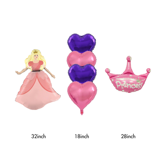 Princess Crown Hearts Foil Balloon Bundle