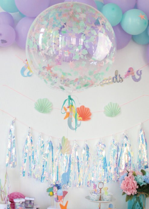 Mermaid confetti bubble balloons with bunting tails
