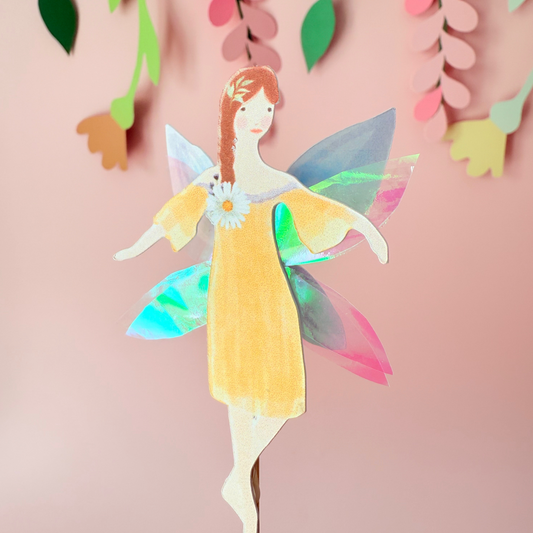 11pcs Whimsical iridescent Fairy Garden Cake Topper Set – Handmade with Paper & Crepe Flowers