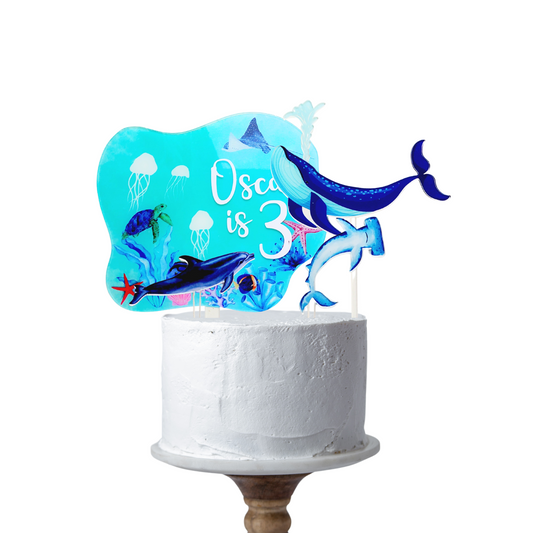 Personalized under the Sea World fish shark whale Acrylic cake topper