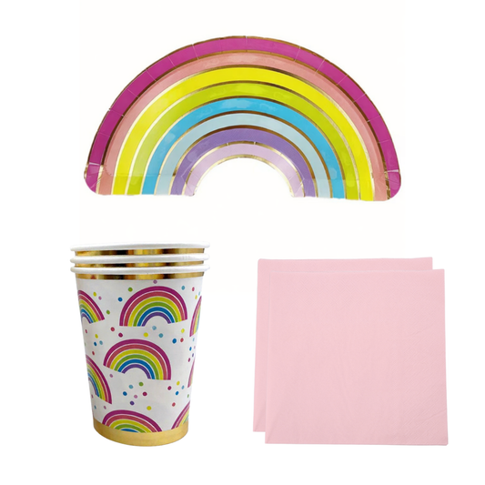 8-pack Rainbow and cloud party disposable paper tableware kit