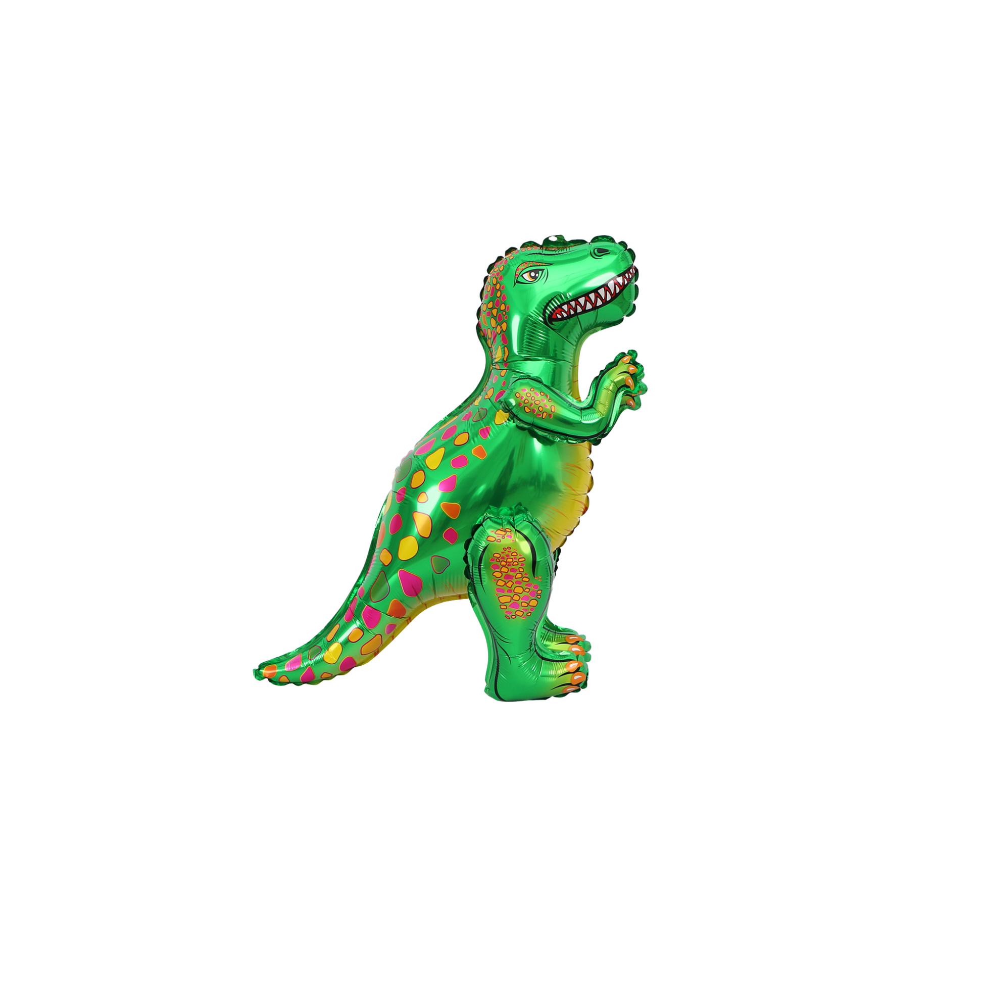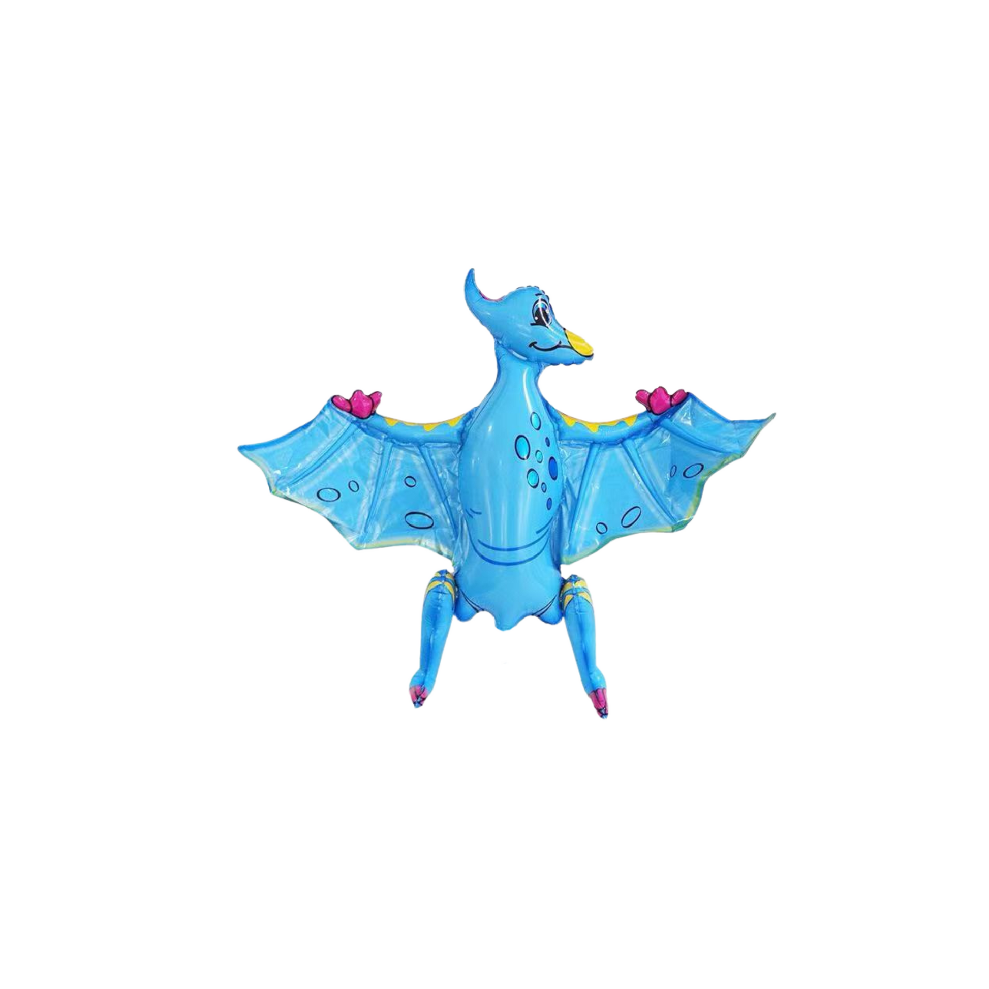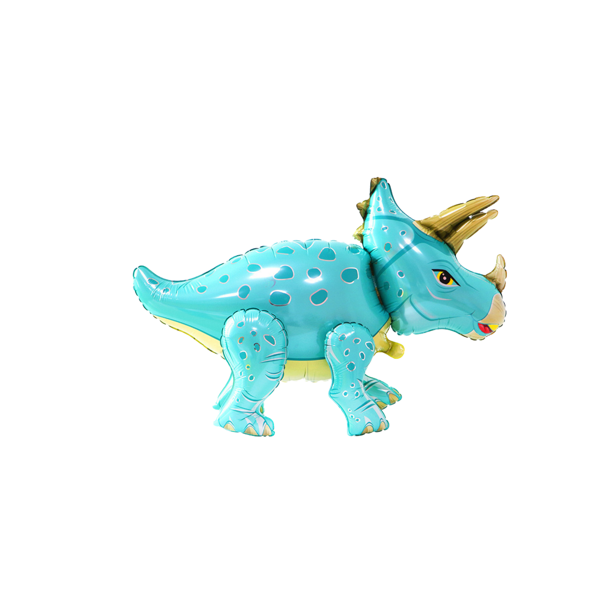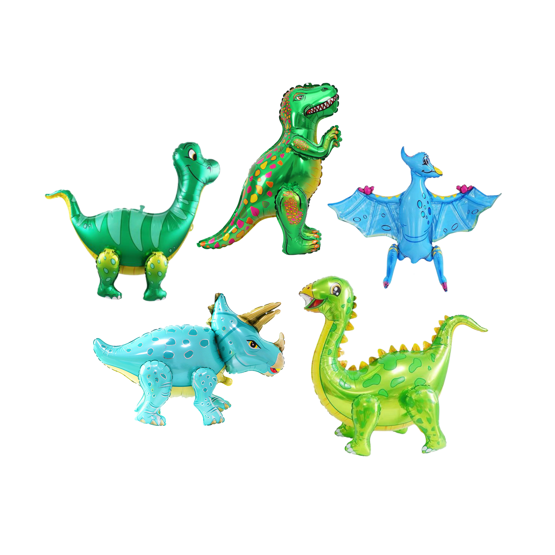 A selection of blue and green dinosaur balloons, no helium needed, free standing once air inflated.