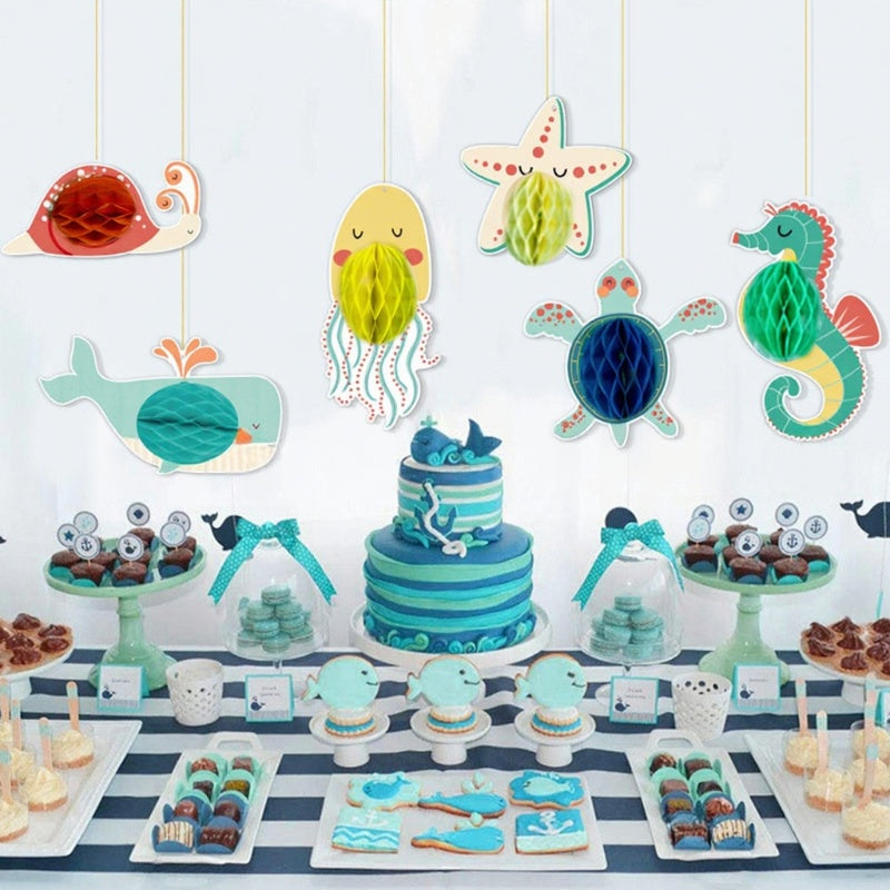 6pcs under the sea world fish octopus hanging honeycomb balls