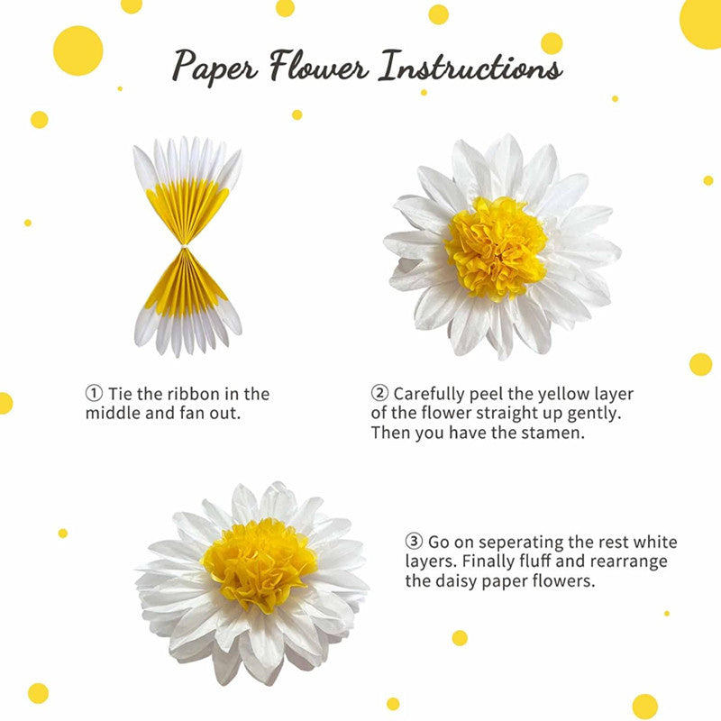 8-pack of double layered paper flowers, size 6inch, 8inch, 10inch, 12inch, 2-pack each size.