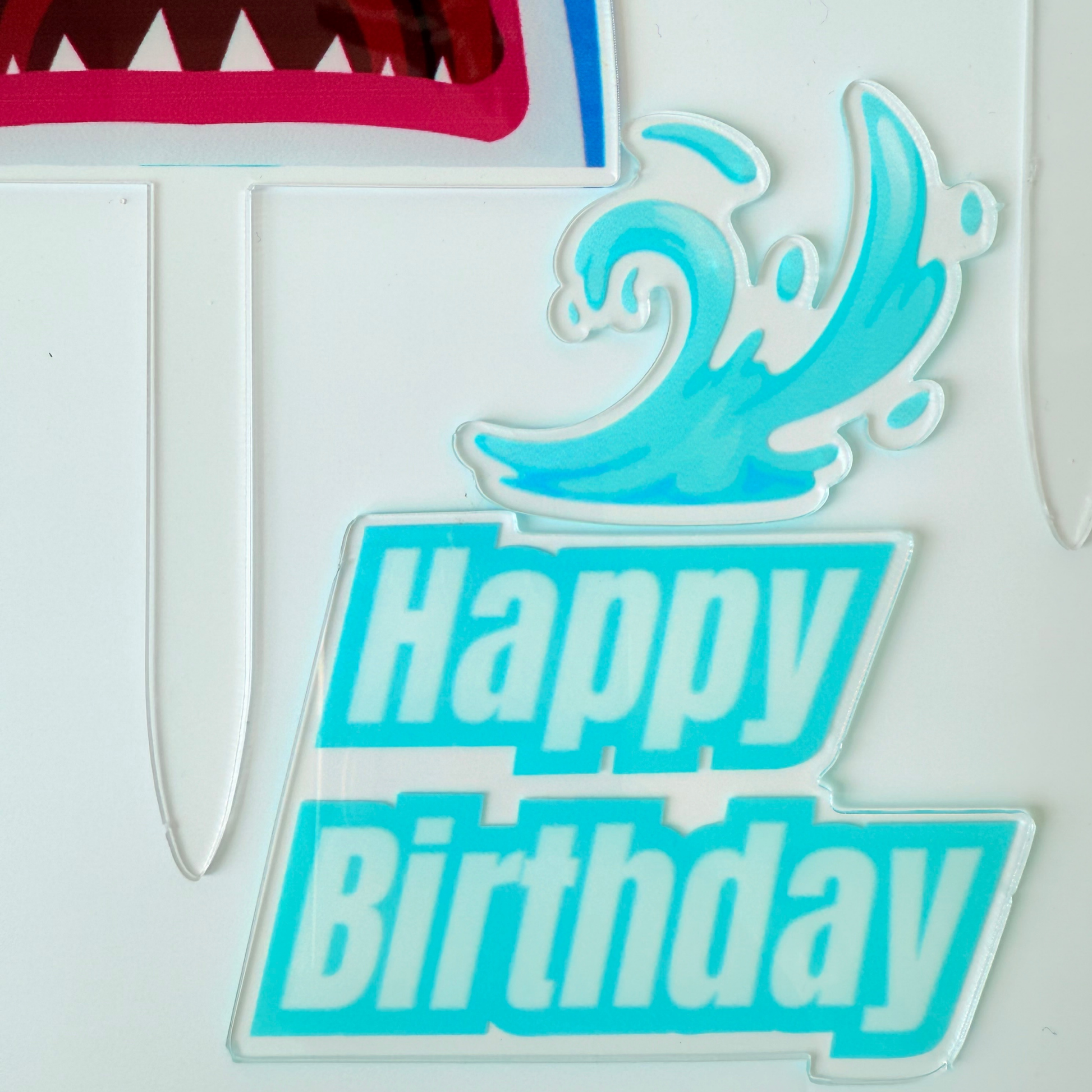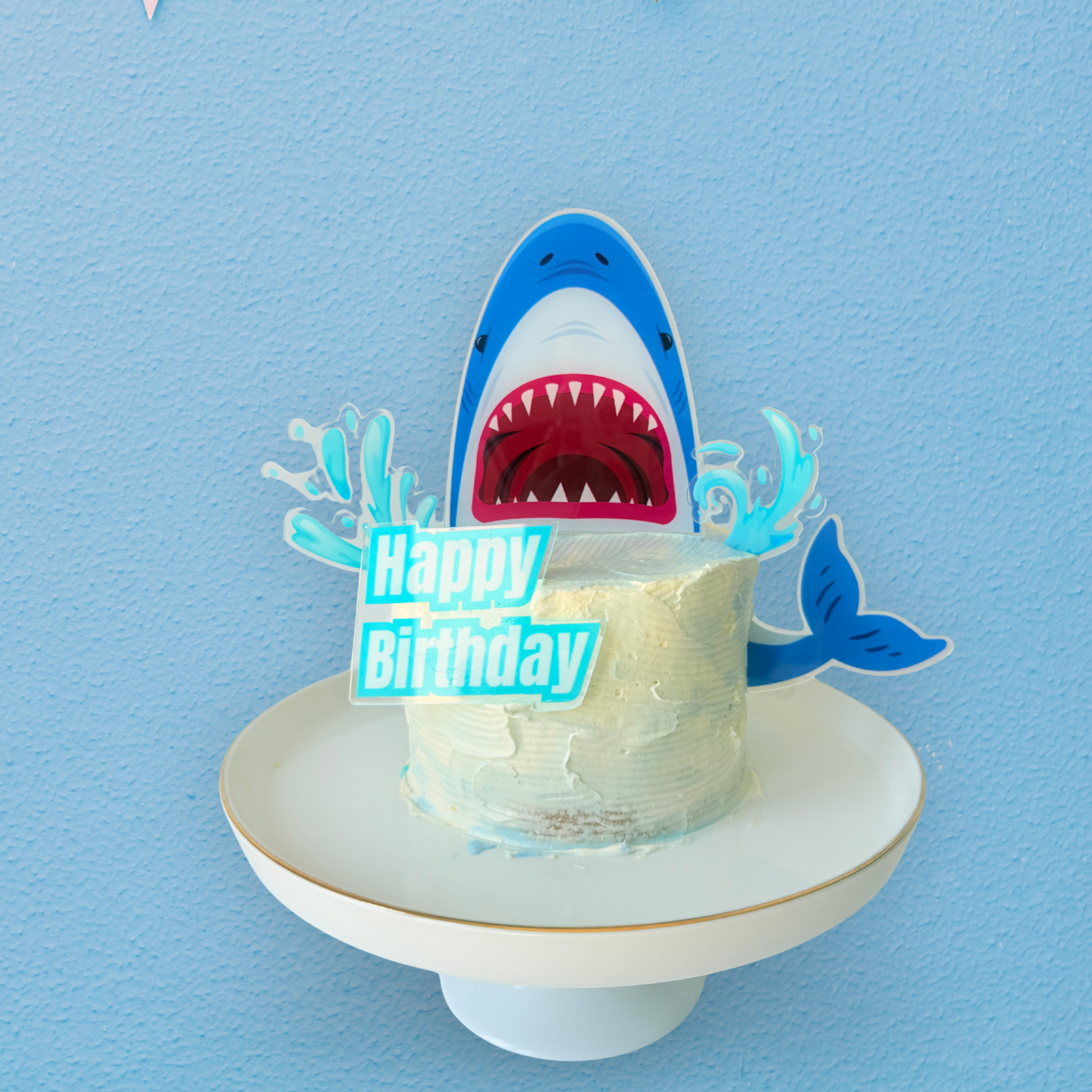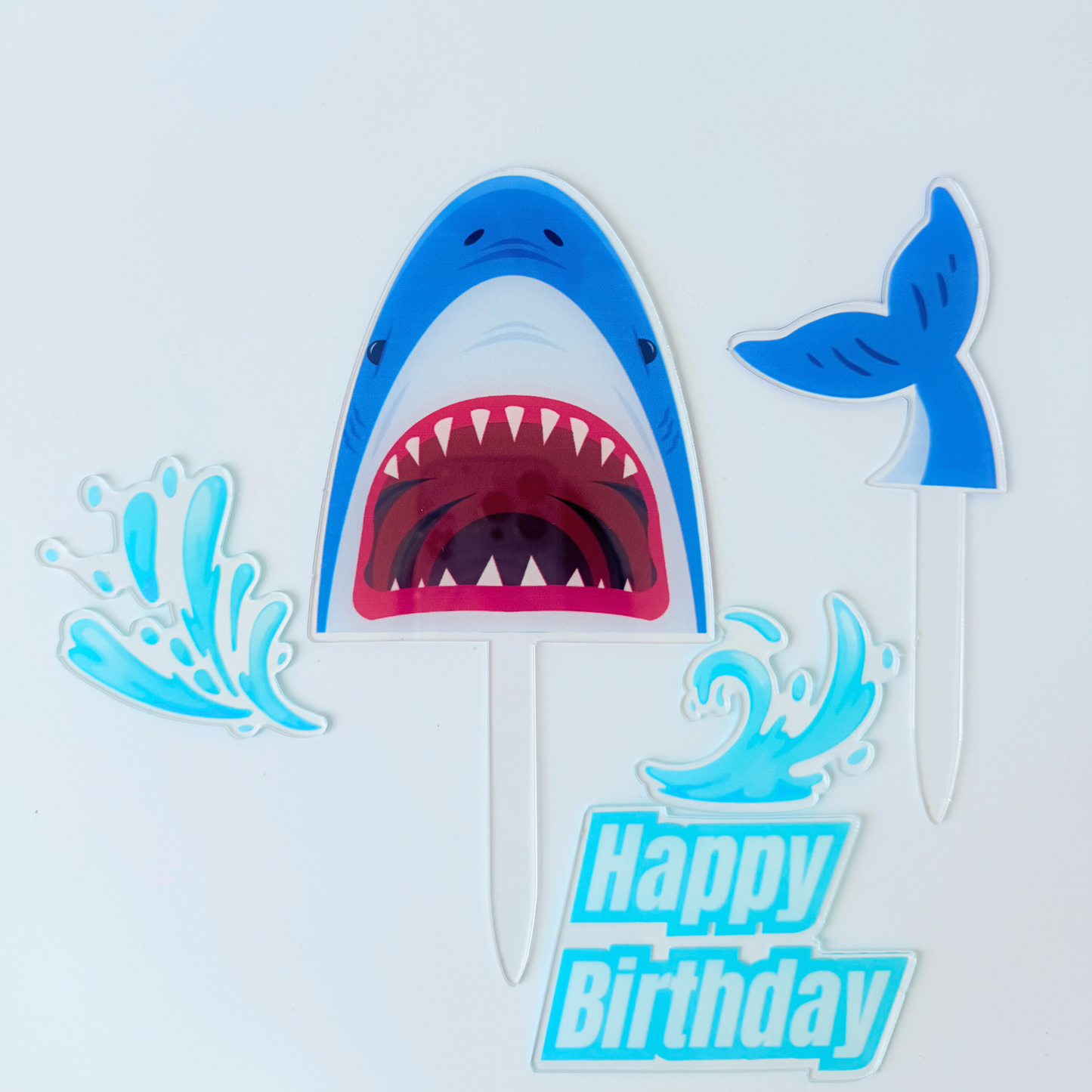 Acrylic Shark Cake Topper Set – Ocean Theme Birthday Party Decoration