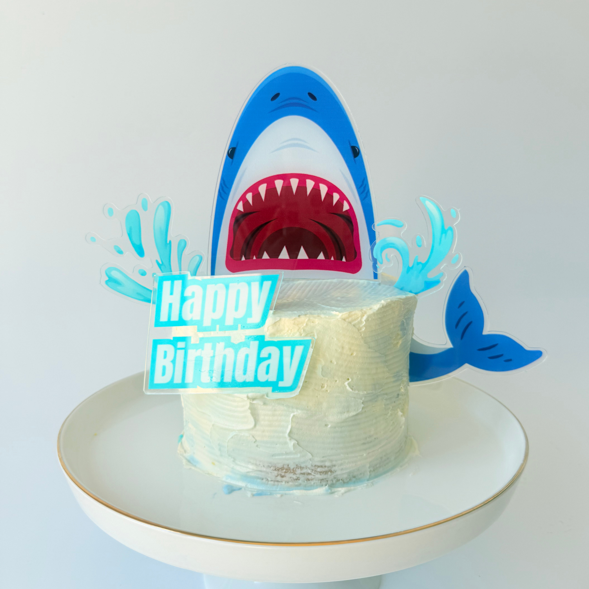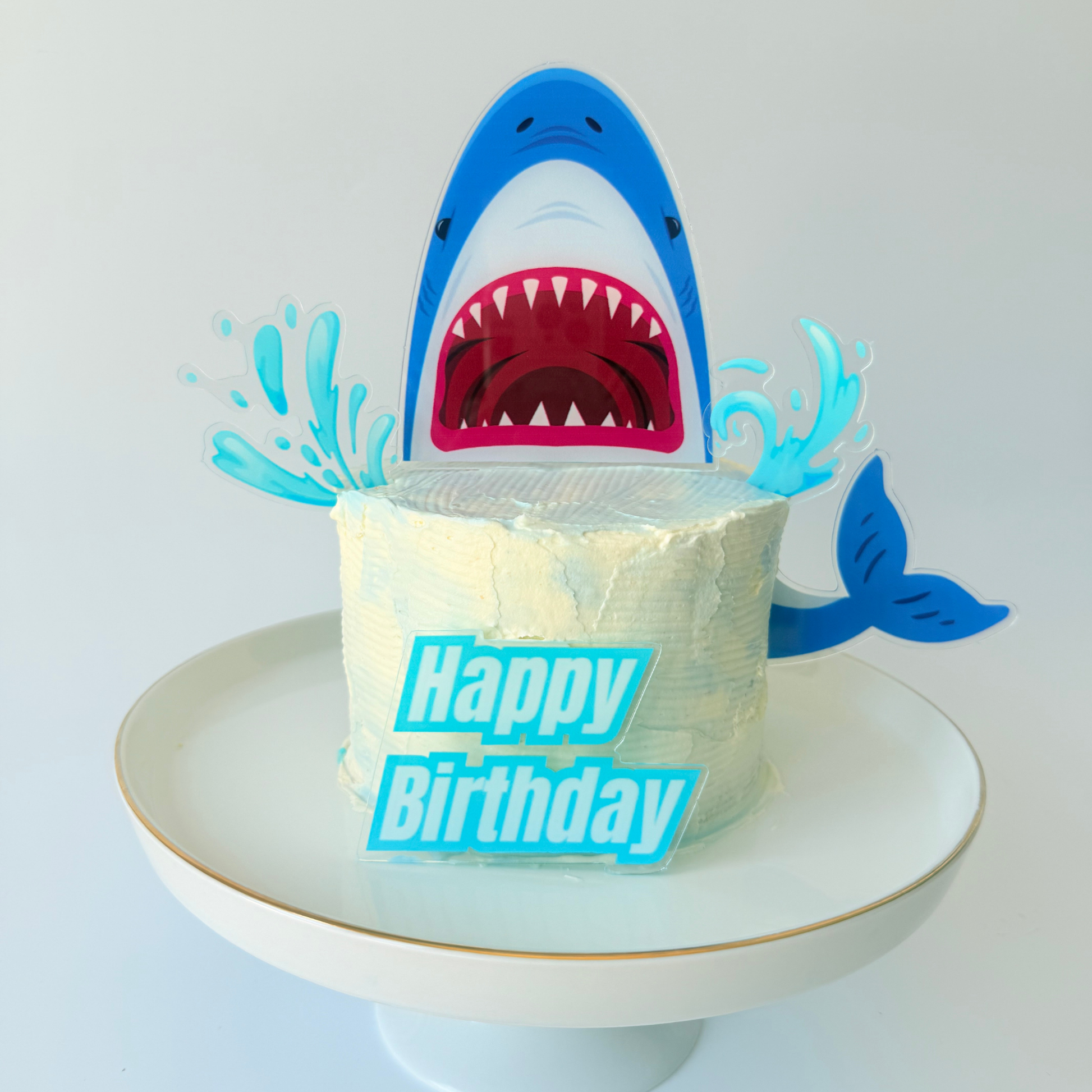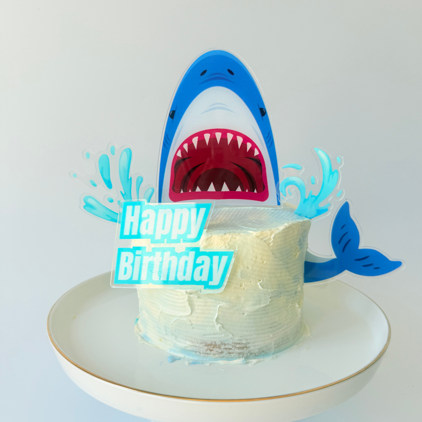 Acrylic Shark Cake Topper Set – Ocean Theme Birthday Party Decoration