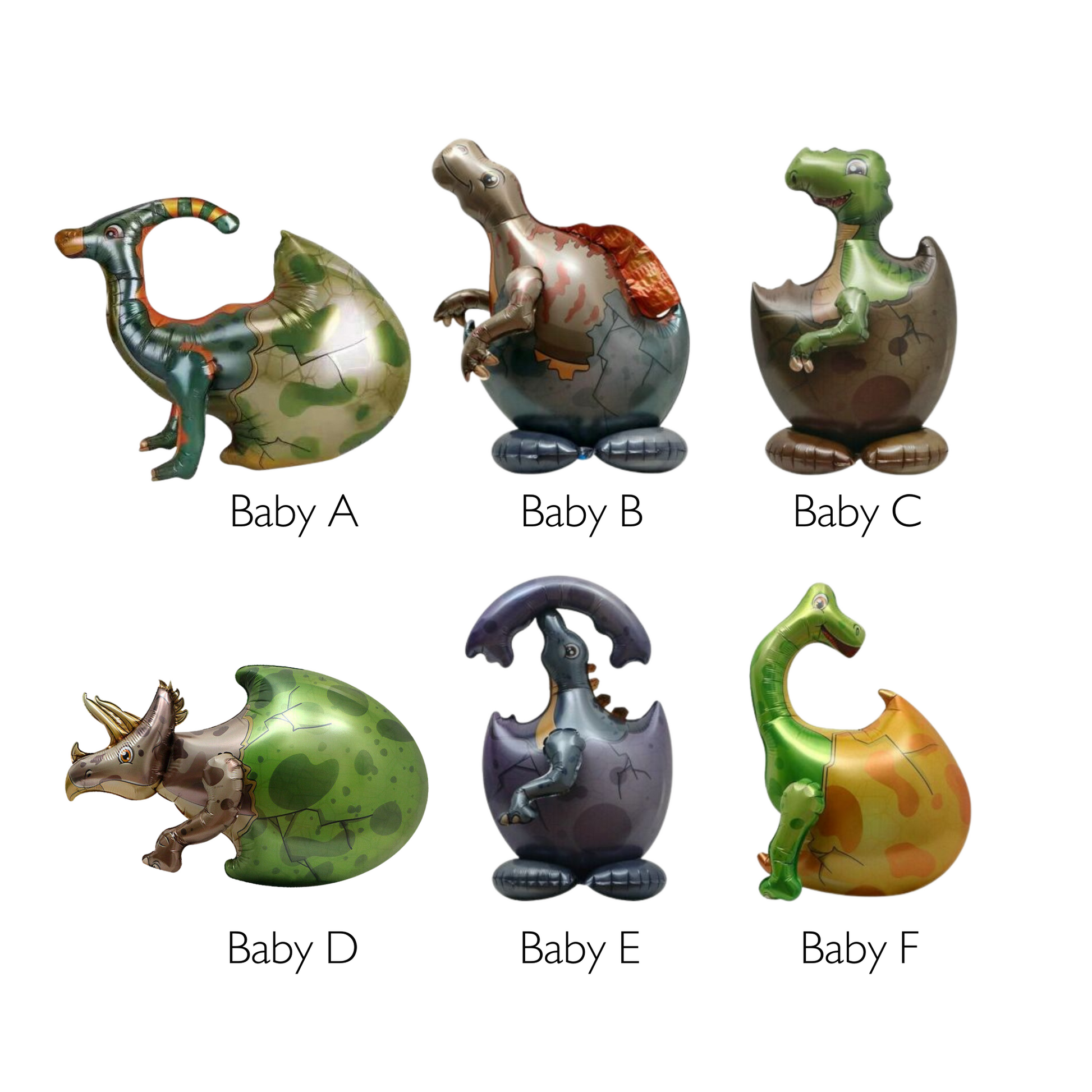 A selection of baby dinosaur balloons, no helium needed, free standing once air inflated. Size-18inch.