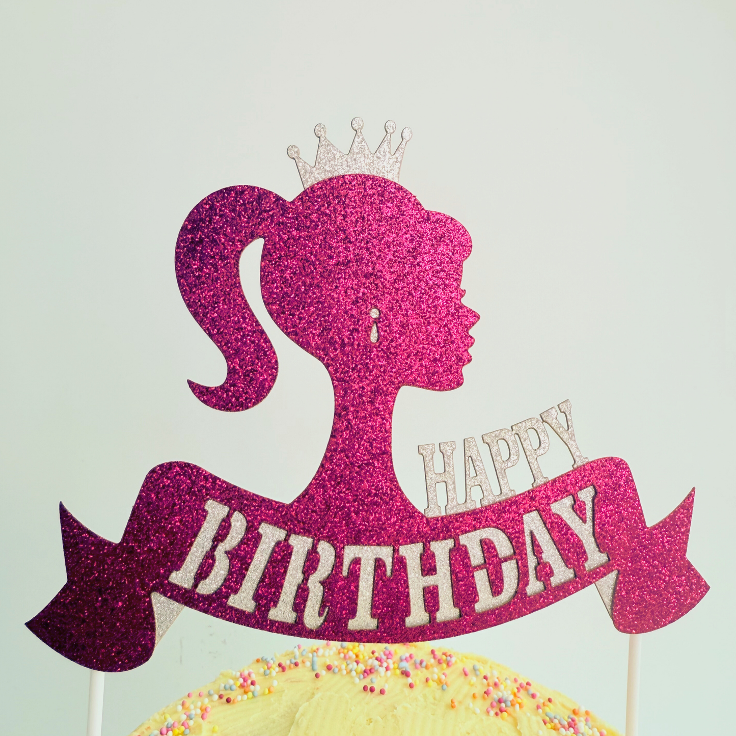 Barbie girl style hot pink glittery simple cake topper birthday cake decor