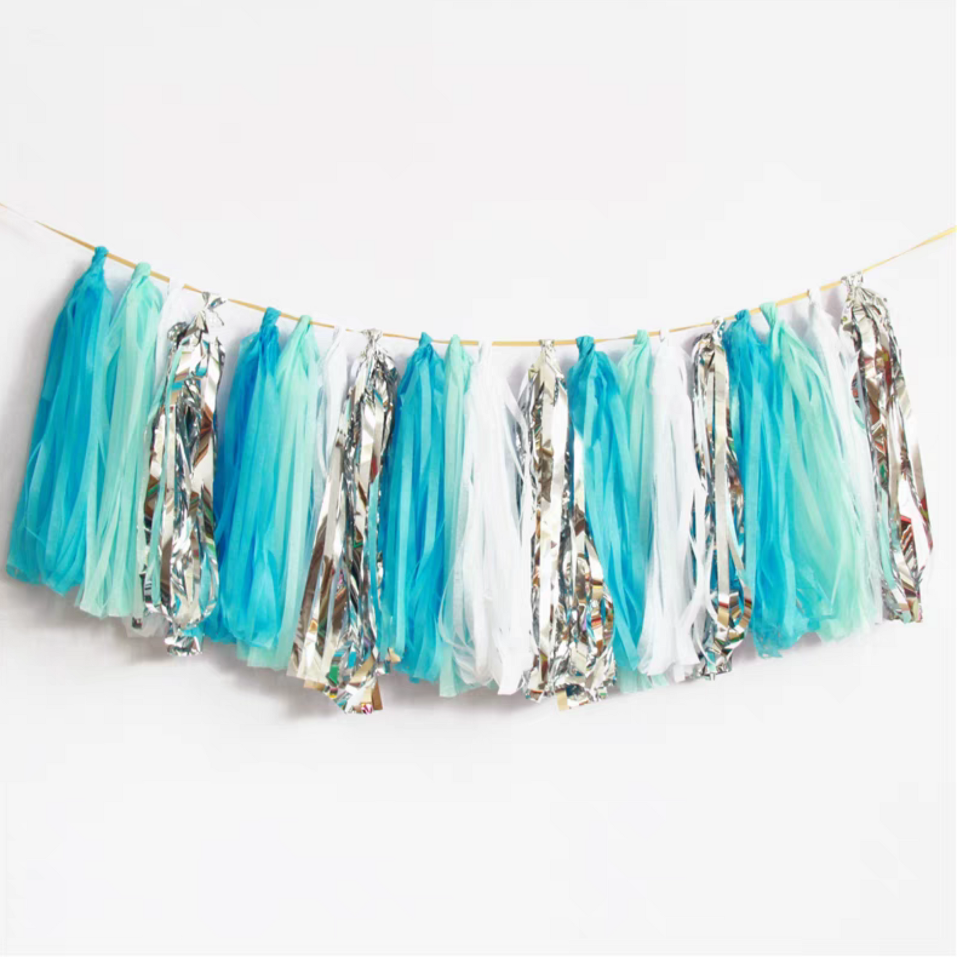 Blue white silver style paper tissue tassel garland