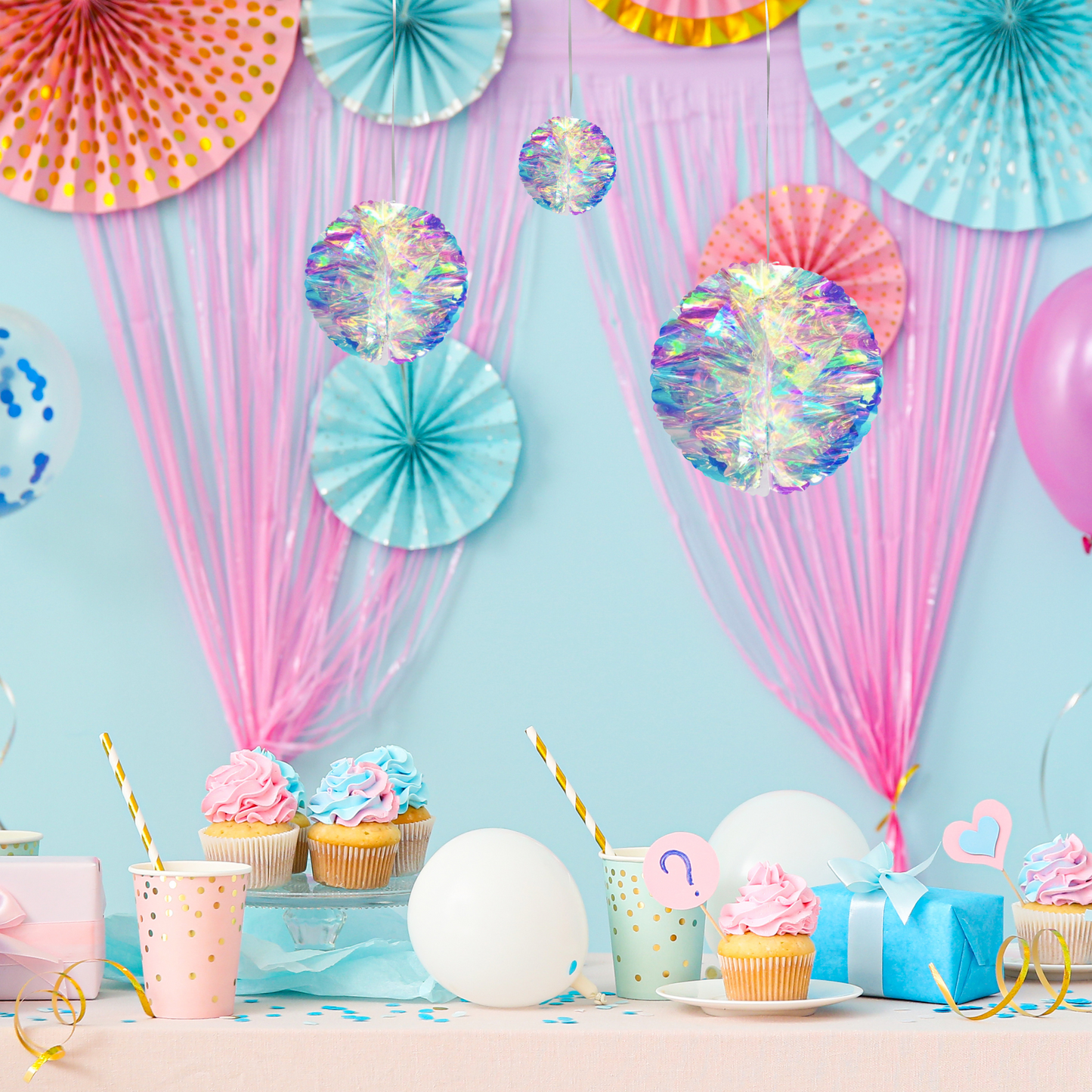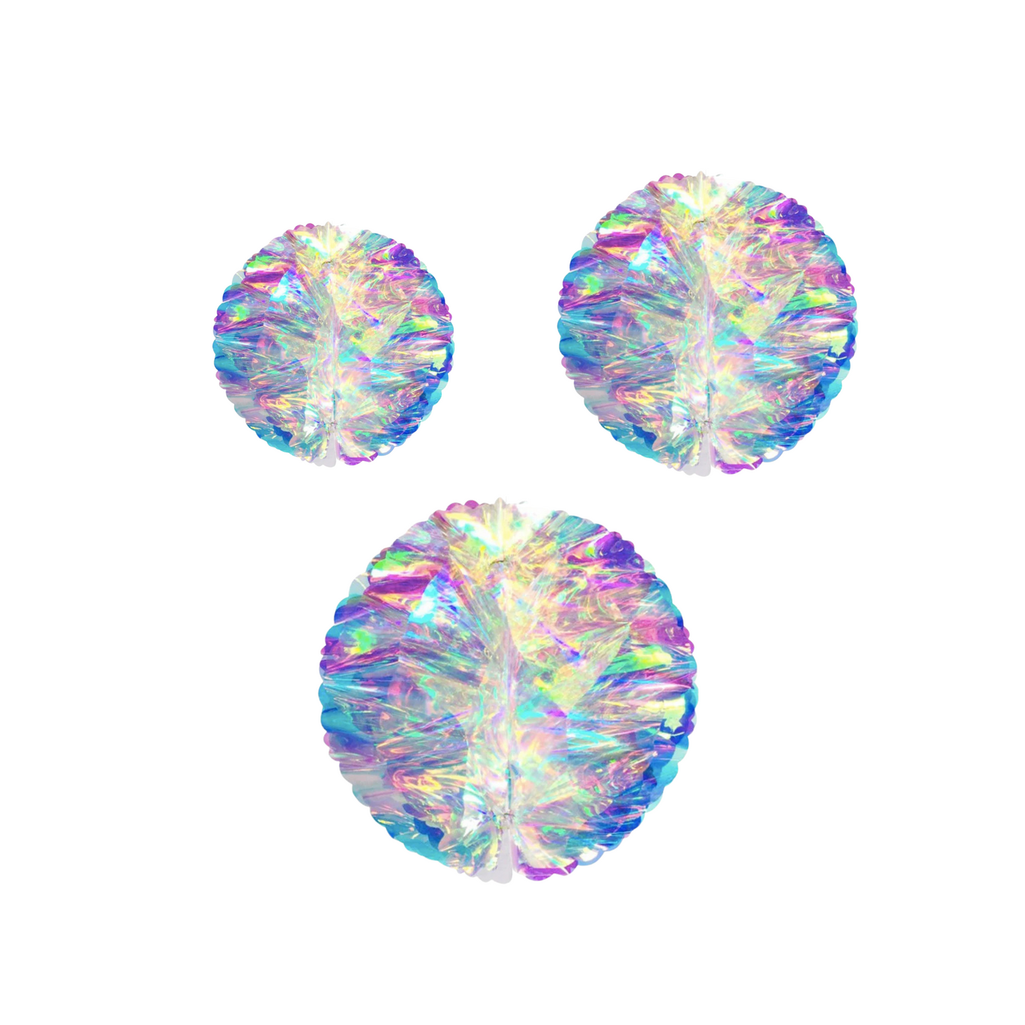 Stunning honeycomb balls made of iridescent film, dimension 10cm, 20cm or 40cm.