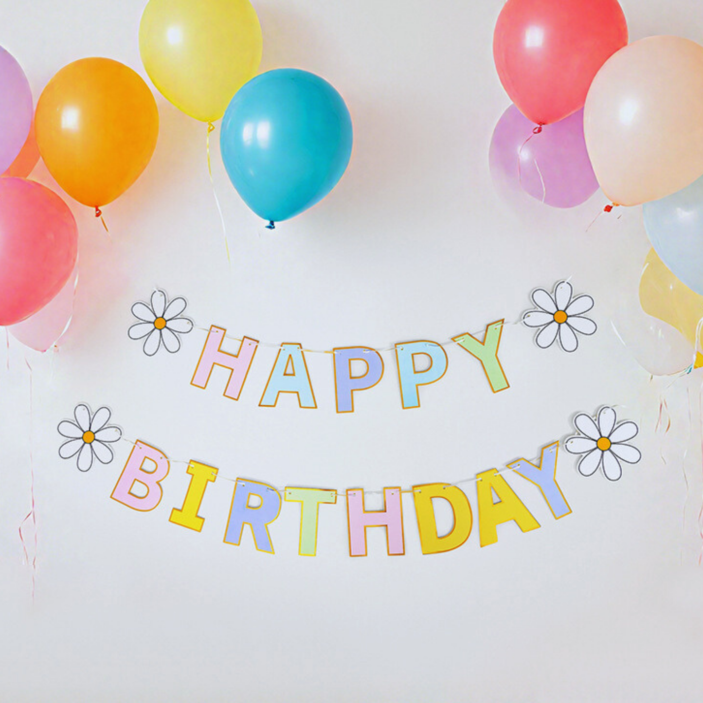 Daisy happy birthday bunting banner with mixed 10pcs 12inch rainbow balloons
