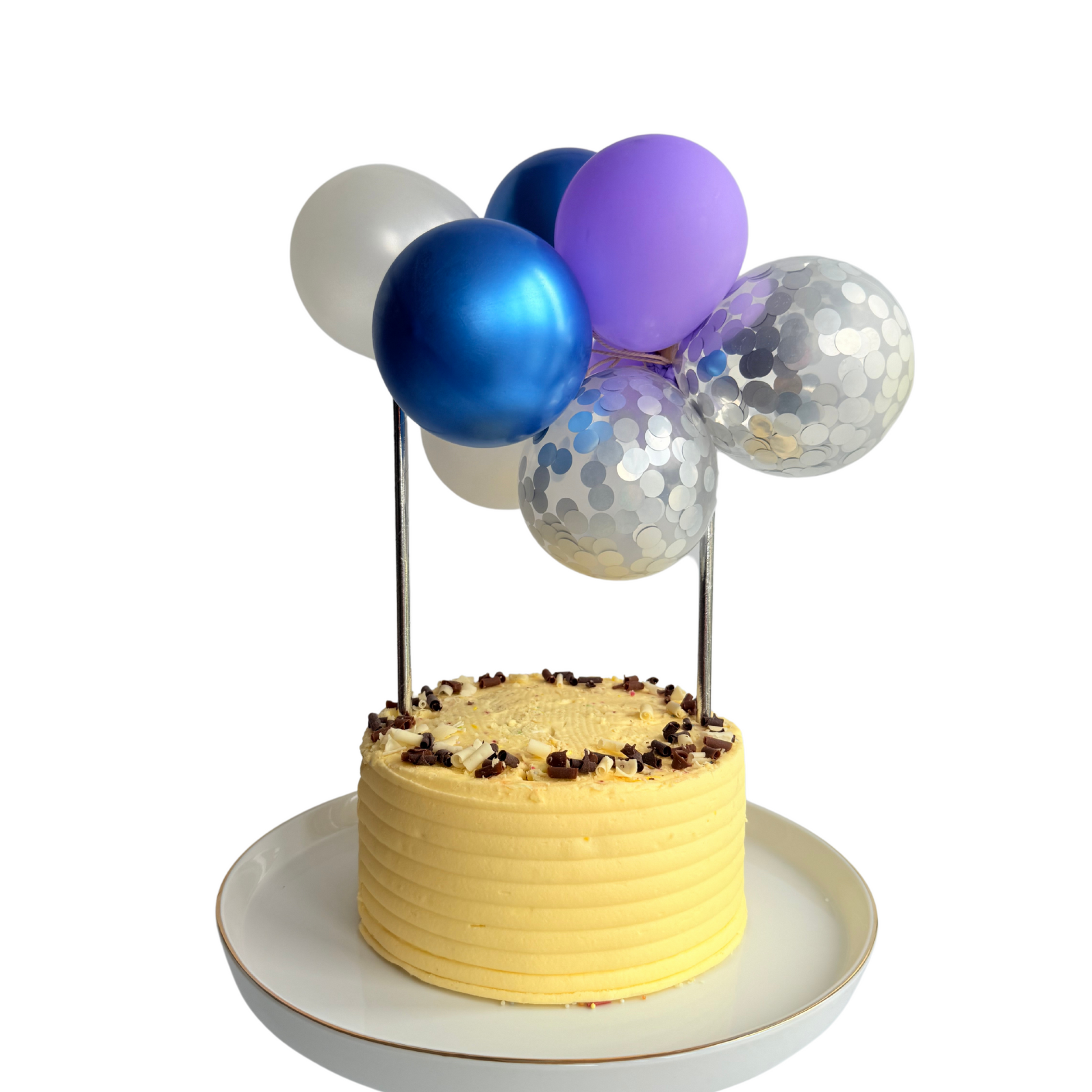 Pack includes: 8pcs 5inch balloons in purple, blue, white and silver confetti. Glue dots, straws and ribbon. A instruction link.