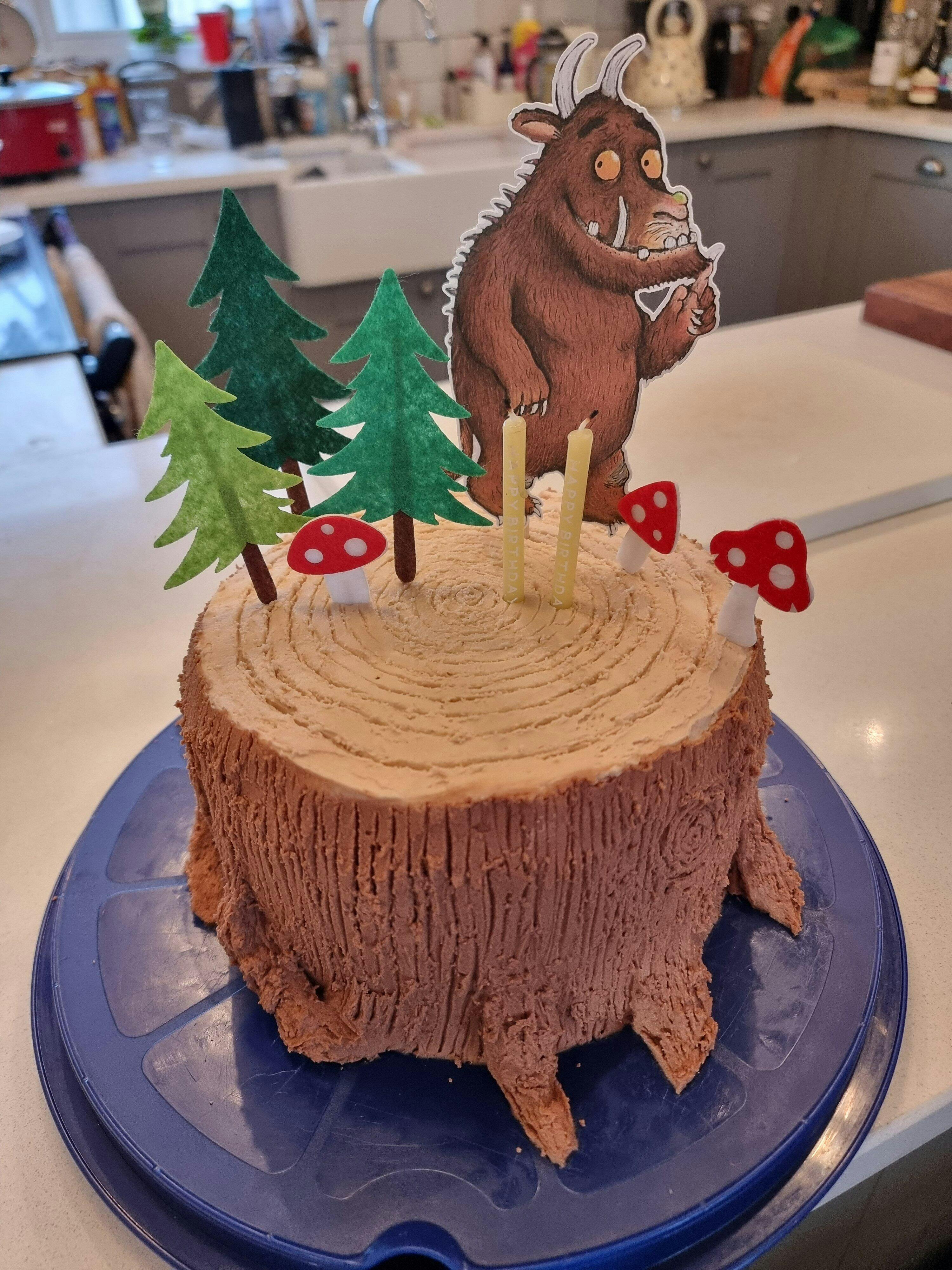 All handmade Super cute Gruffalo themed cake topper set. Cake topper is on a 7inch cake topper.