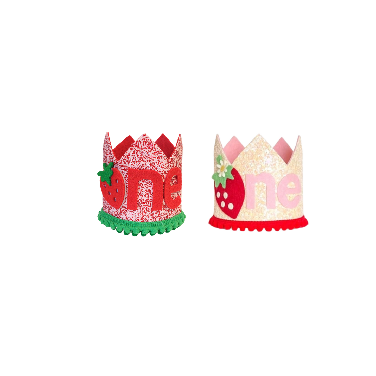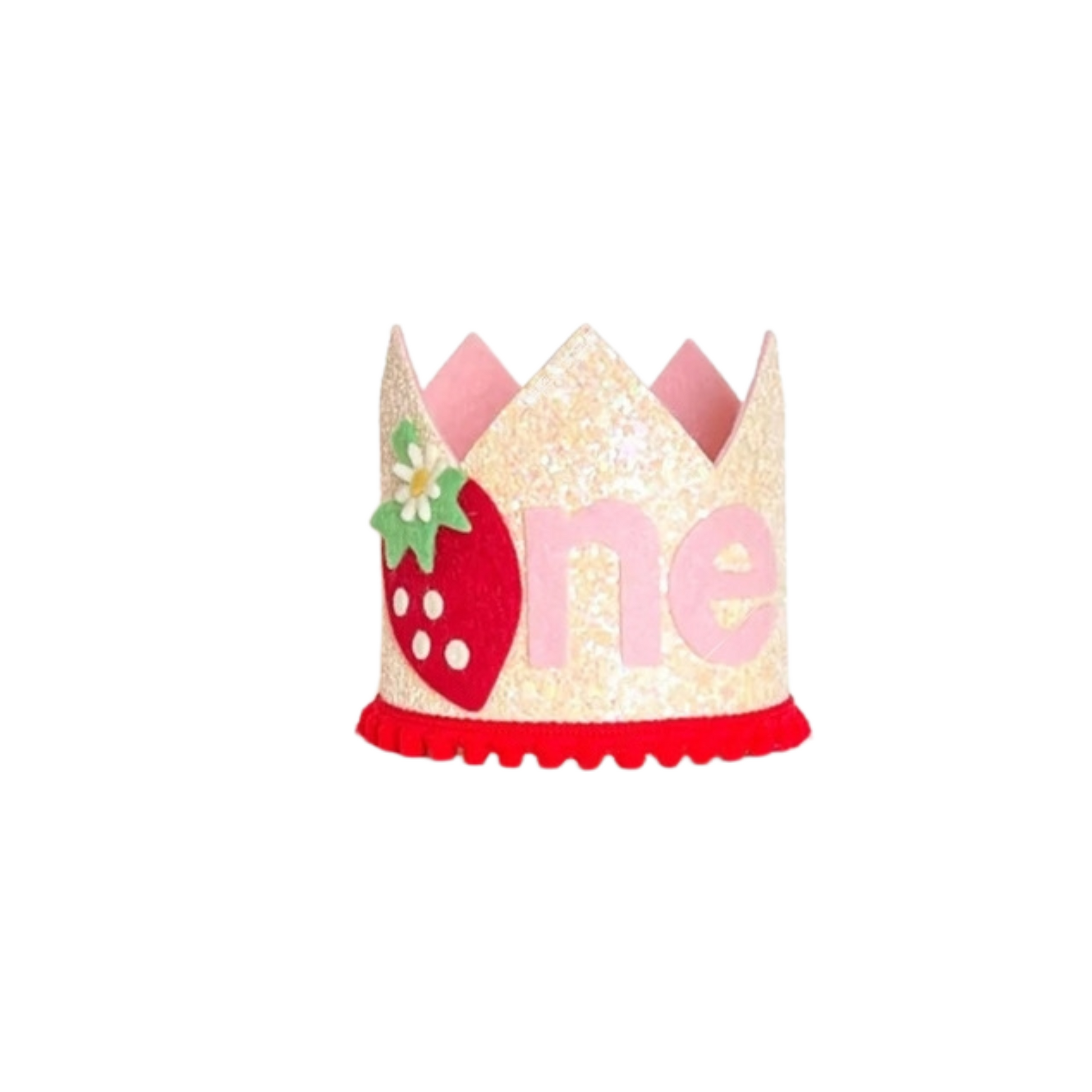Handmade fruits pink strawberry Birthday Party Cake Smashing Felt crown Hat