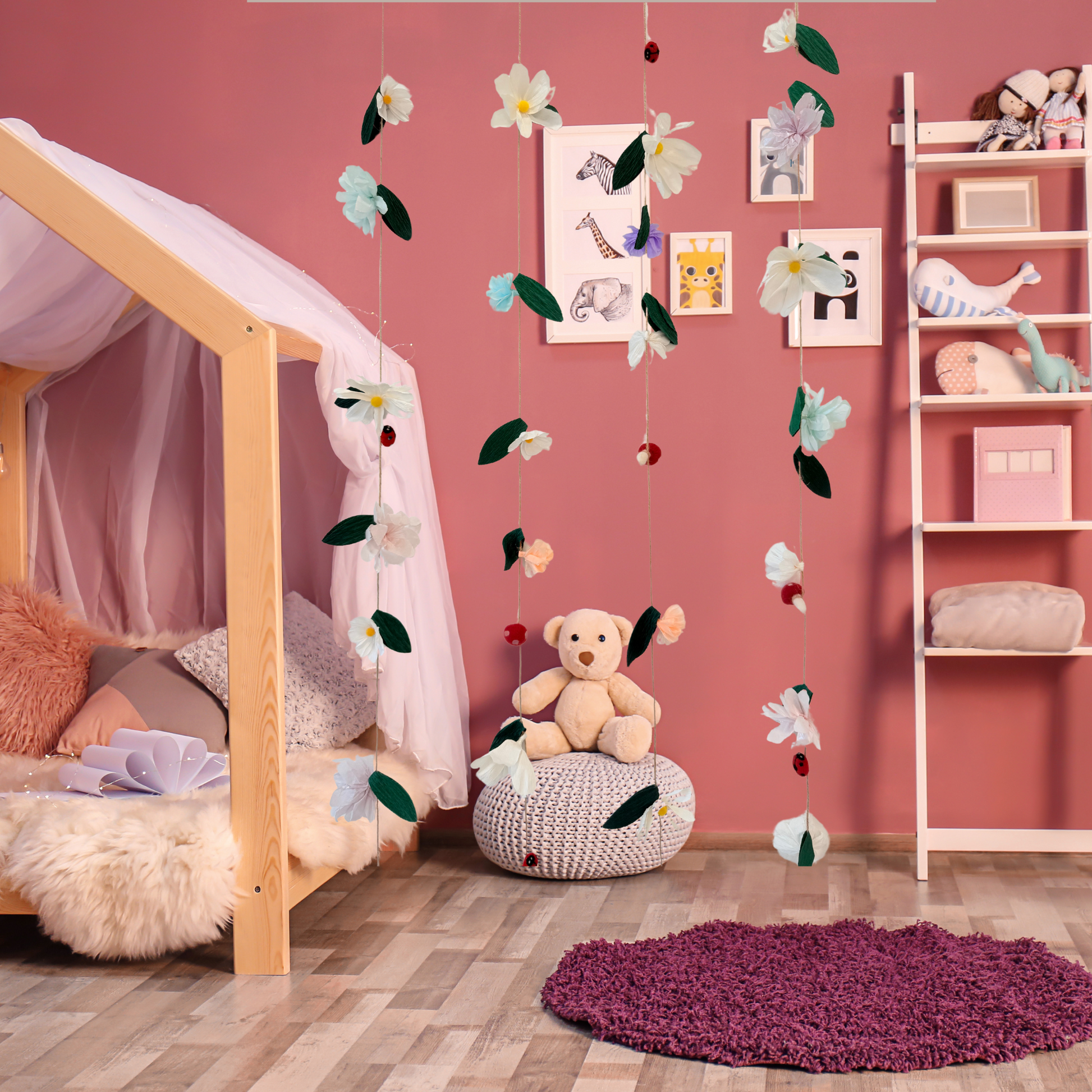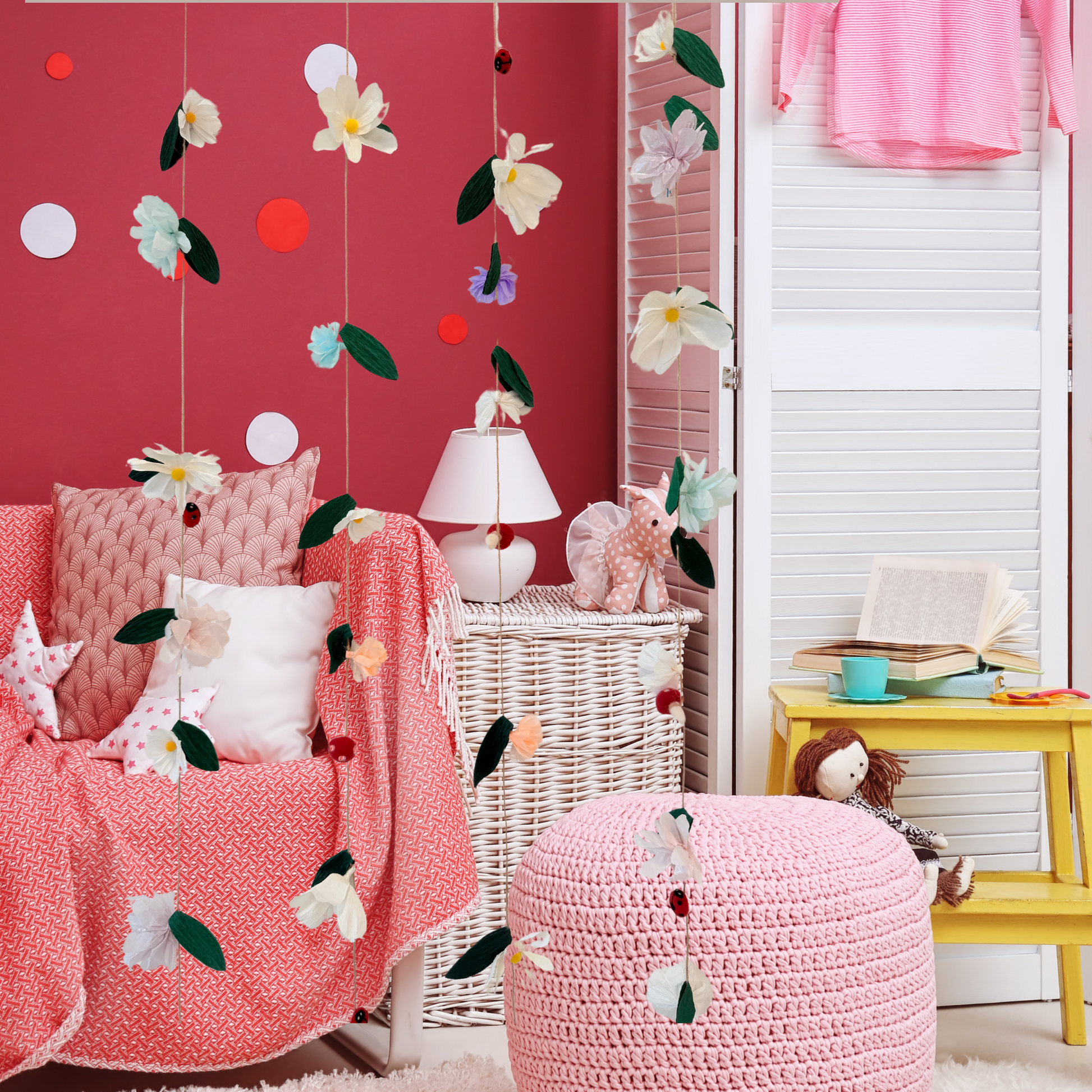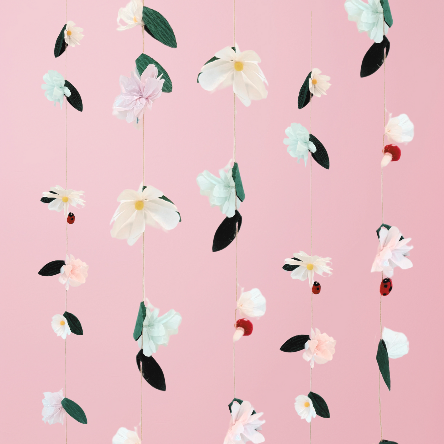 Handmade Girls room fairy party flowers ladybird mushroom hanging streamers decoration