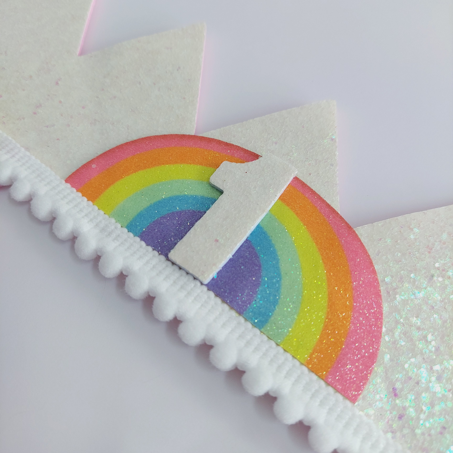 Handmade pastel rainbow Birthday Party Cake Smashing Felt crown Hat