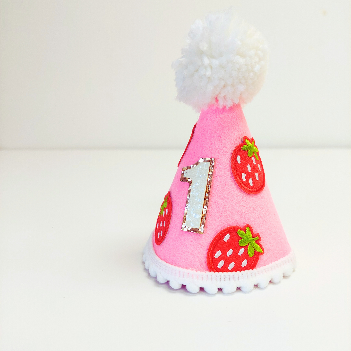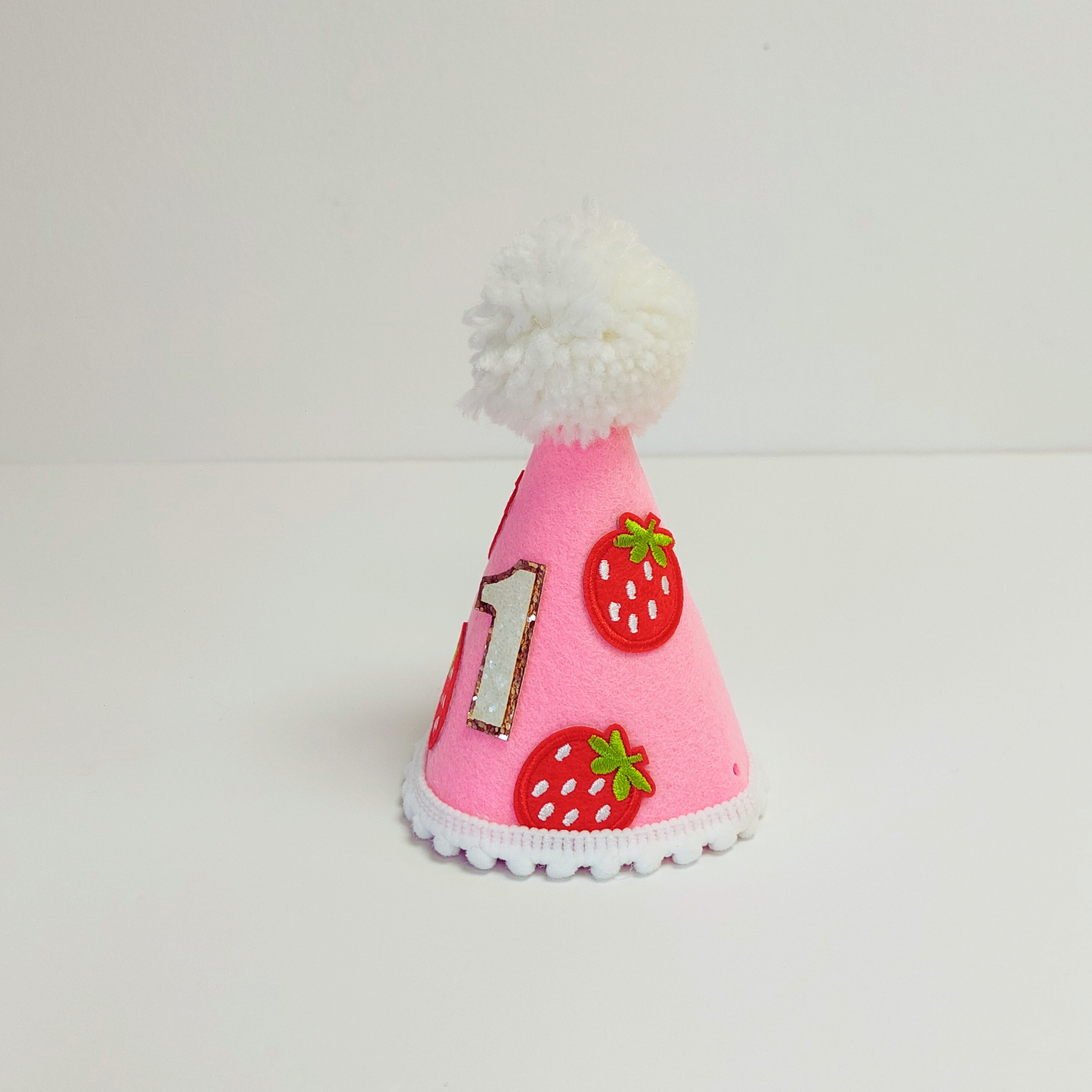 Handmade strawberry 1st Birthday Party Cake Smashing Felt cone crown Hat