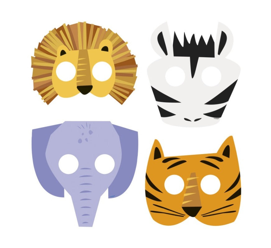 Animal face masks, made of paper card, 8-pack, 4 designs.