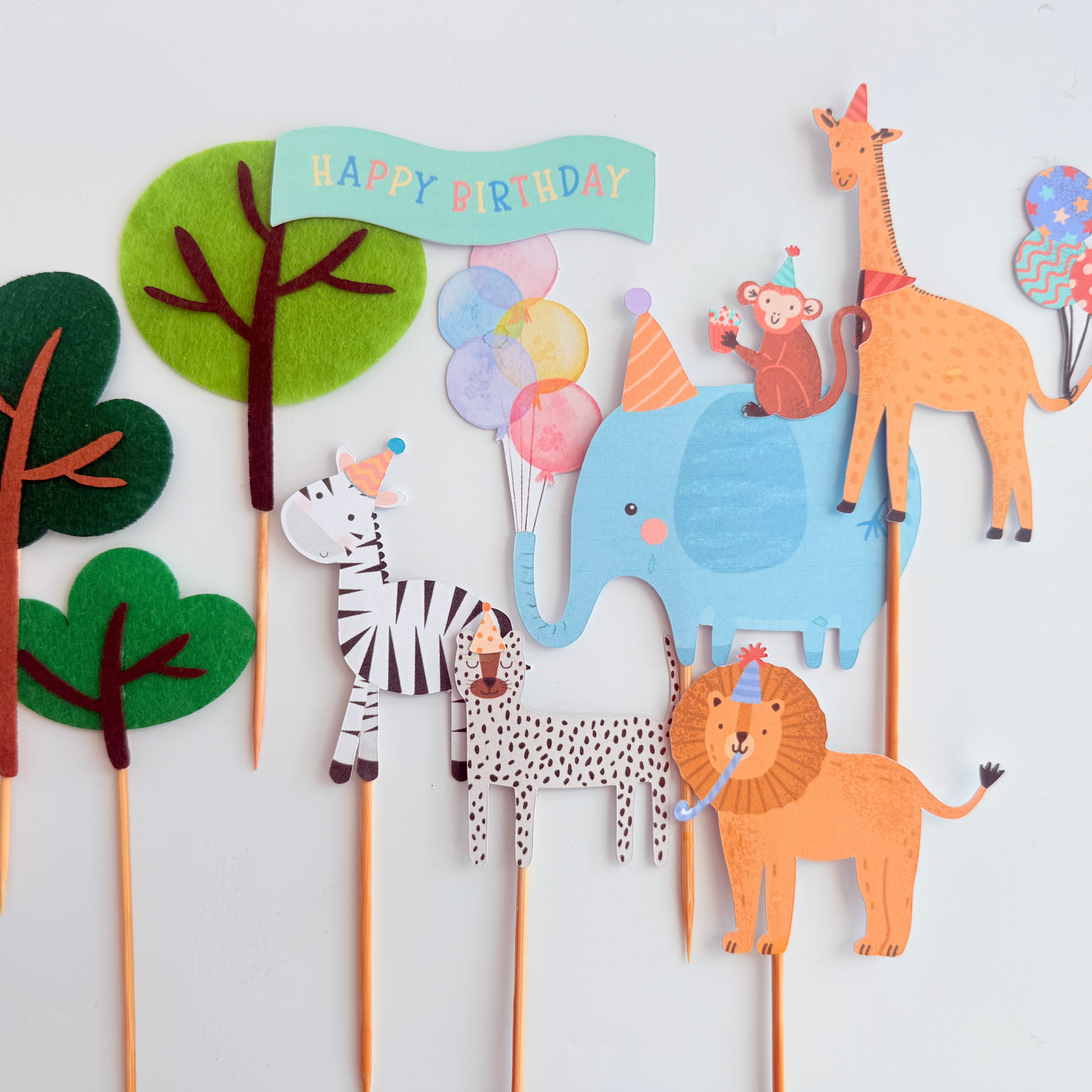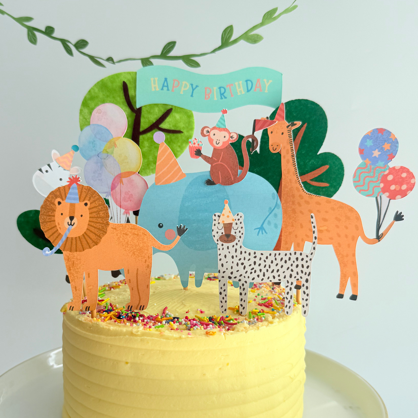 Animal Parade Cake Topper Set – Jungle Safari Birthday Decorations – Cute Animal Party Supplies for Kids' Cakes