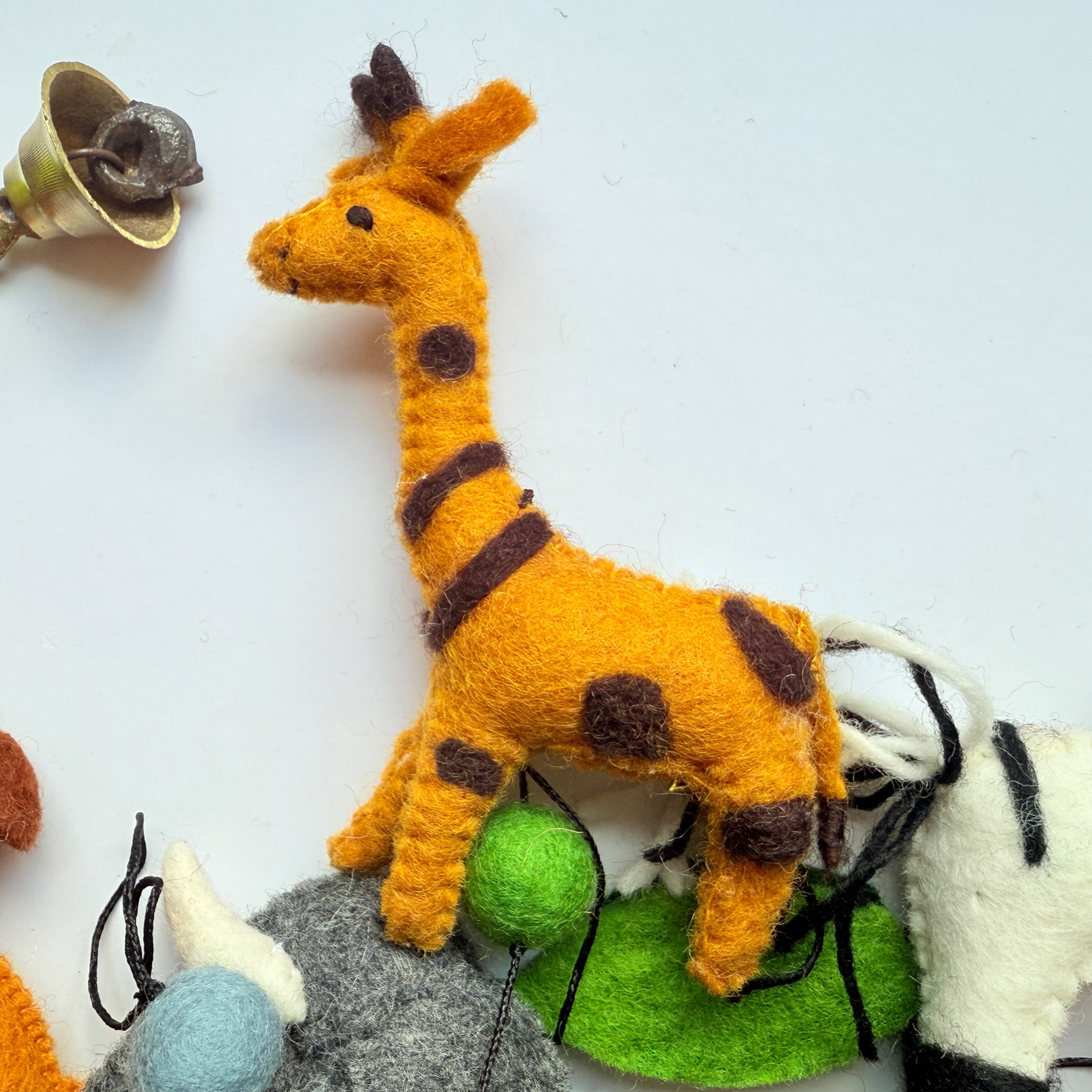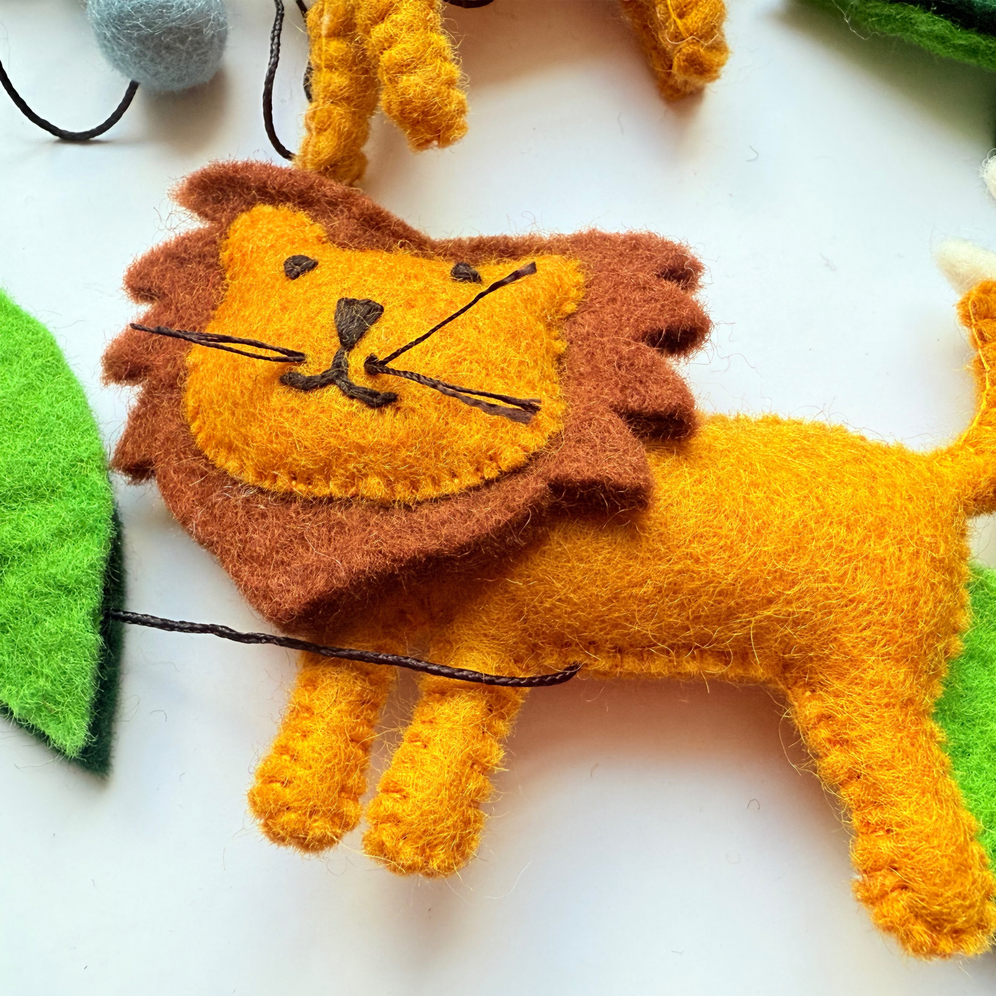 Specially designed jungle safari animal hanging decoration, super cute for kids room, handmade with felt wool. Each animal is around 10-12cm width, 8-10cm height, leaves 3x7cm.