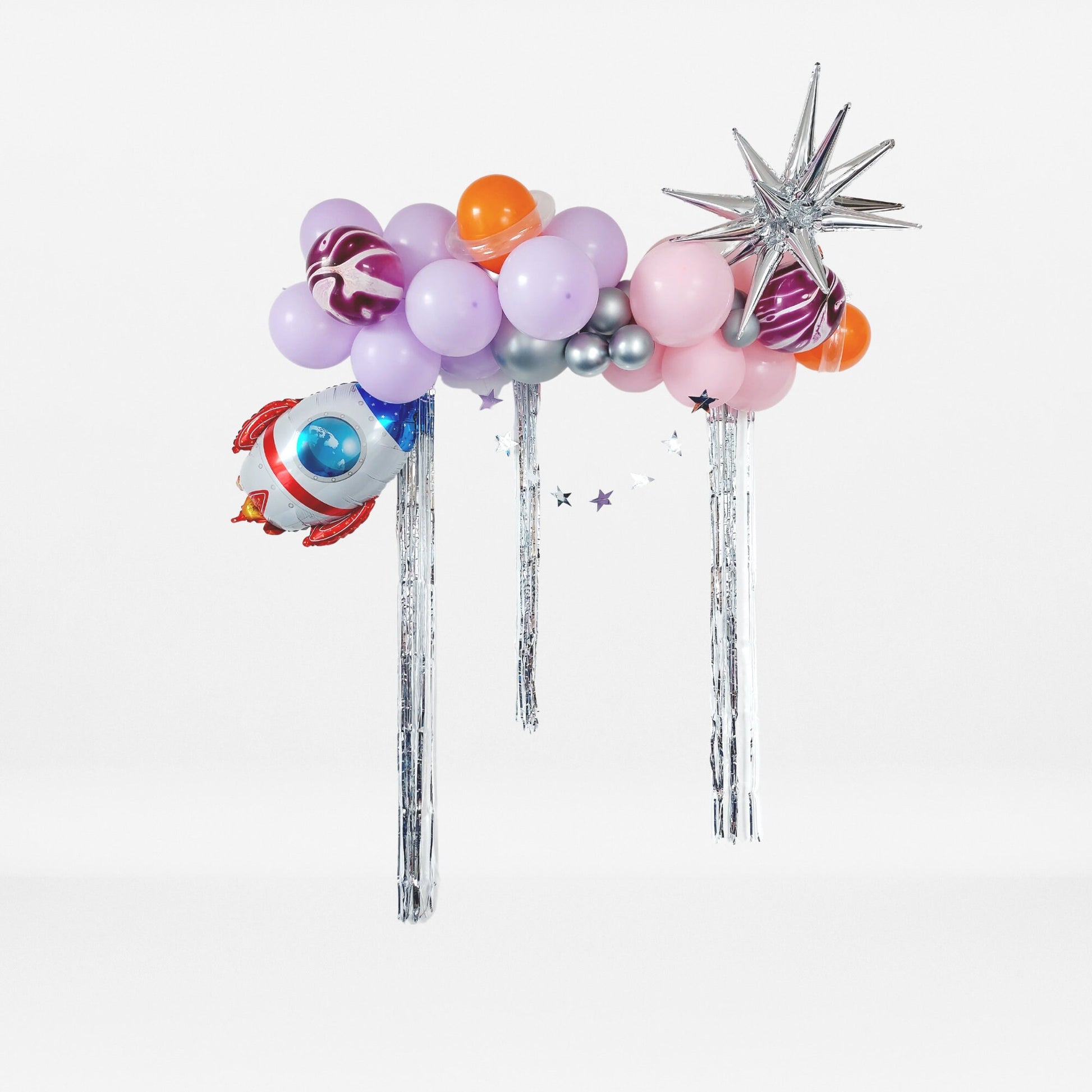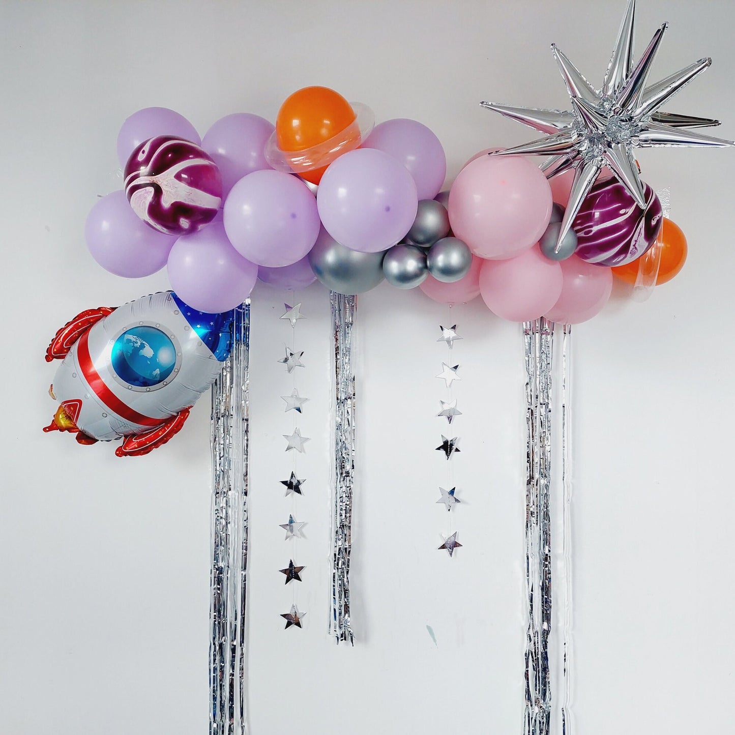 Outer space science pink purple rocket universe girls Birthday Balloon garland