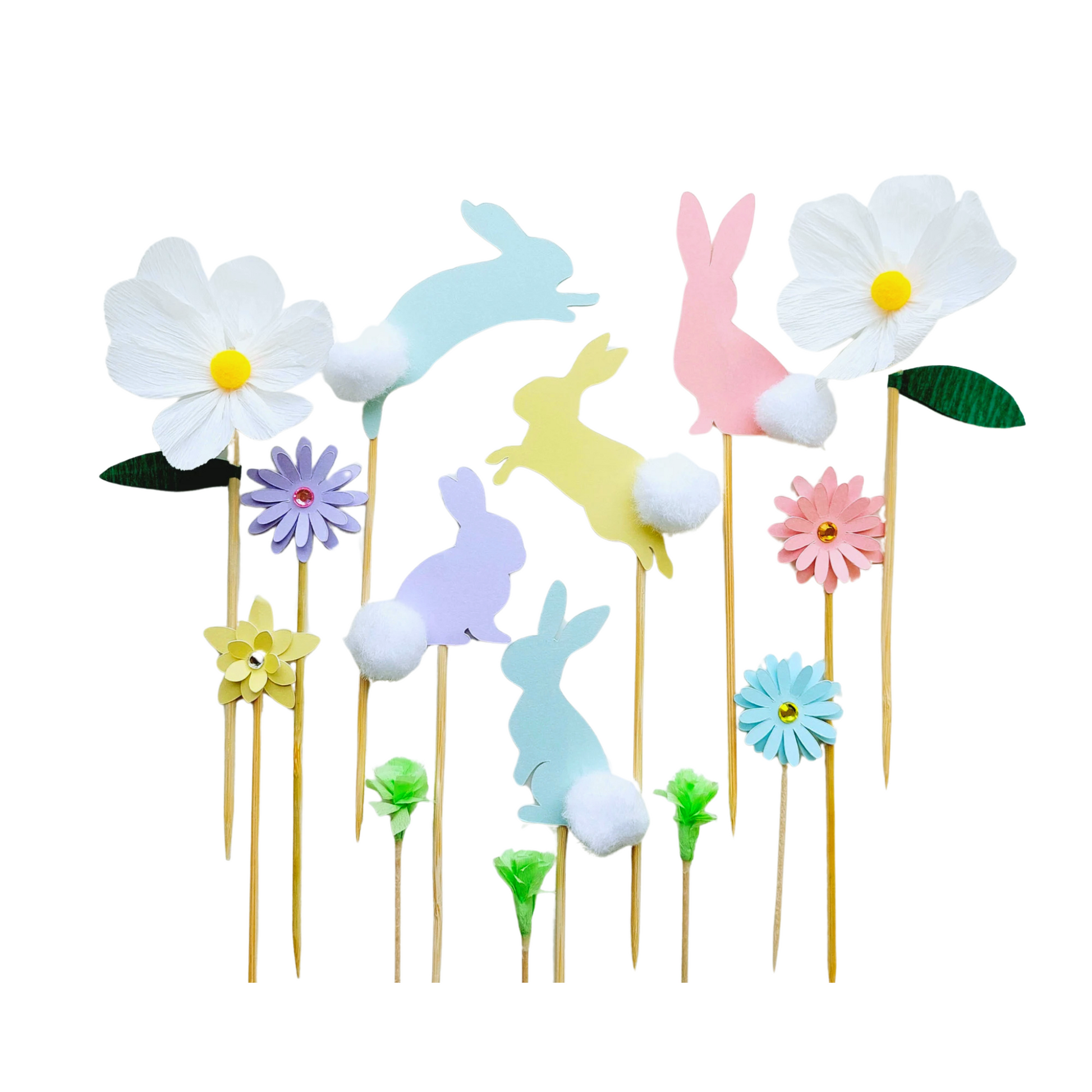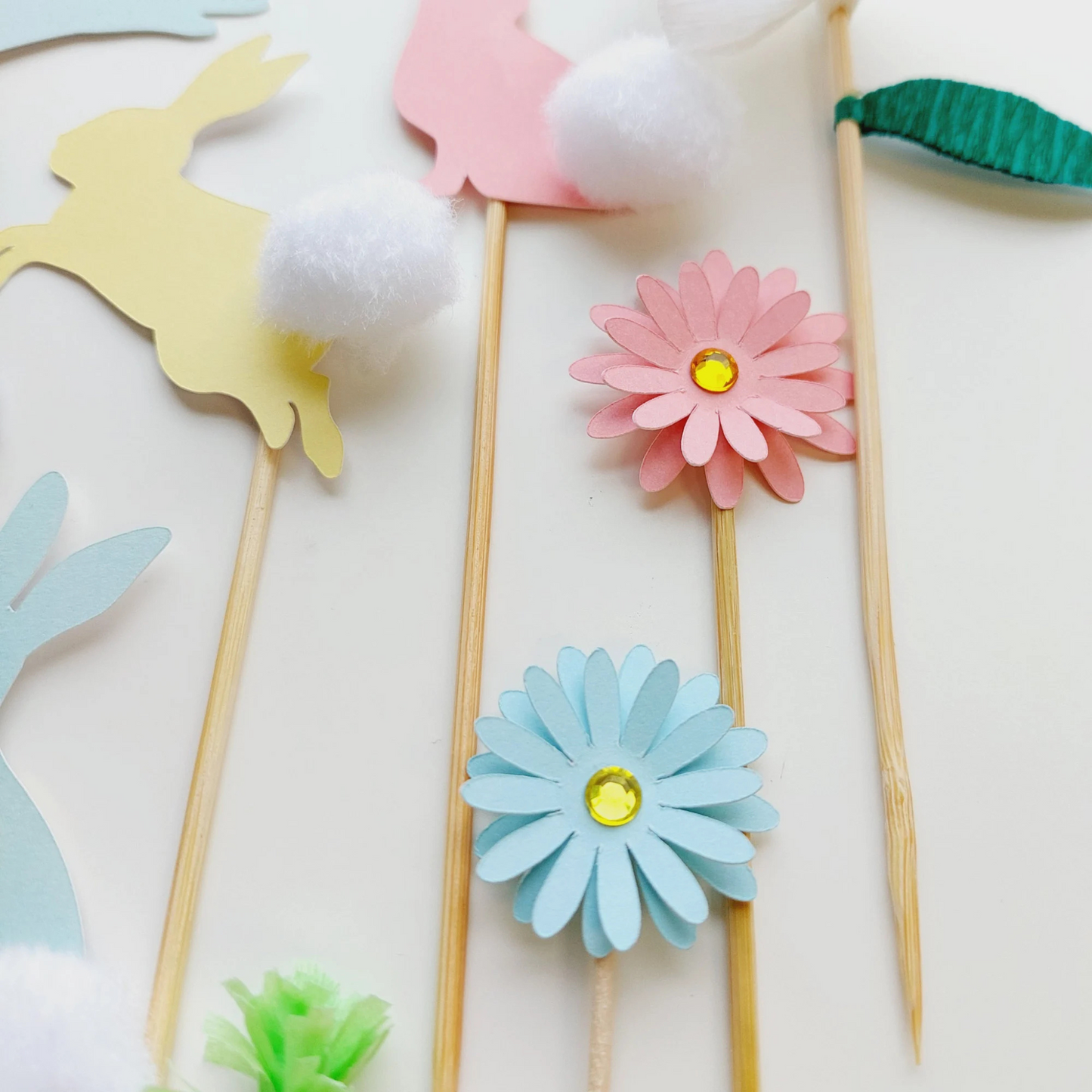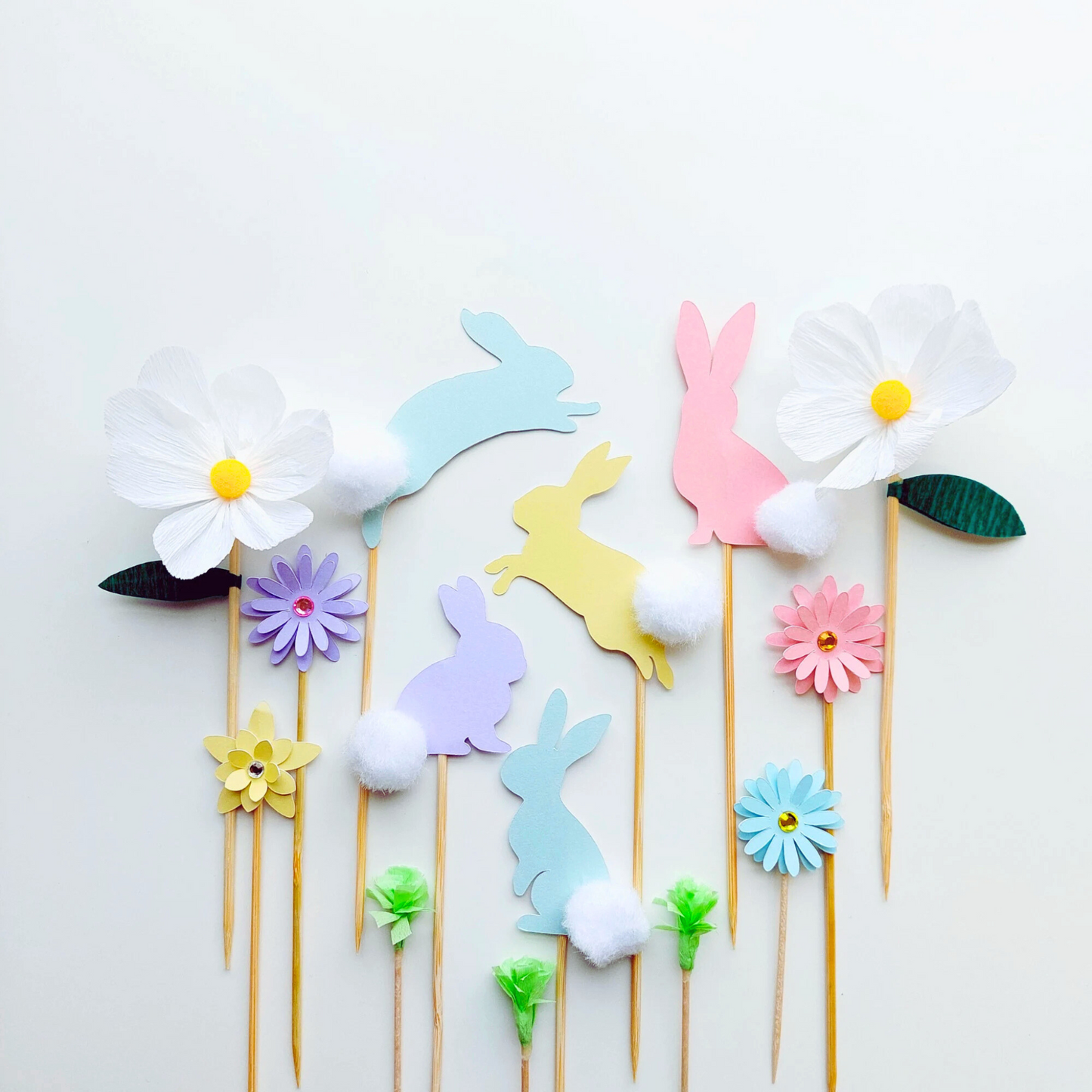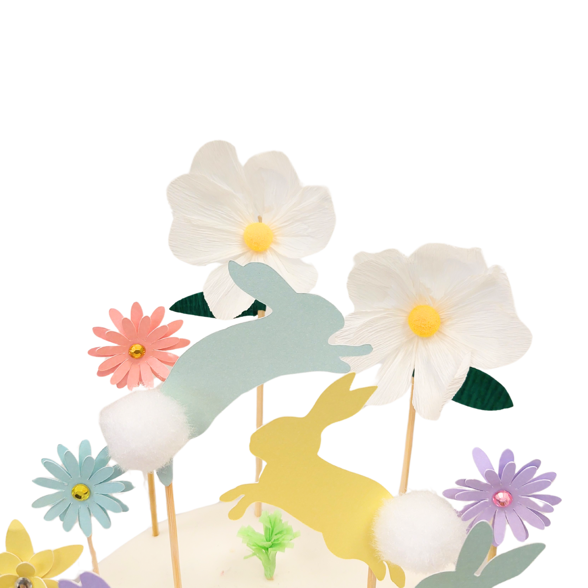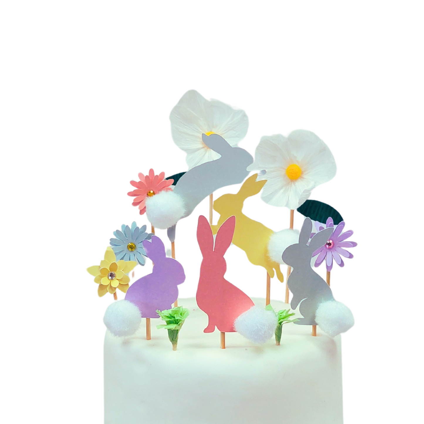 Pastel Easter flowers rabbits bunny cake toppers paper cake decoration girl birthday decoration