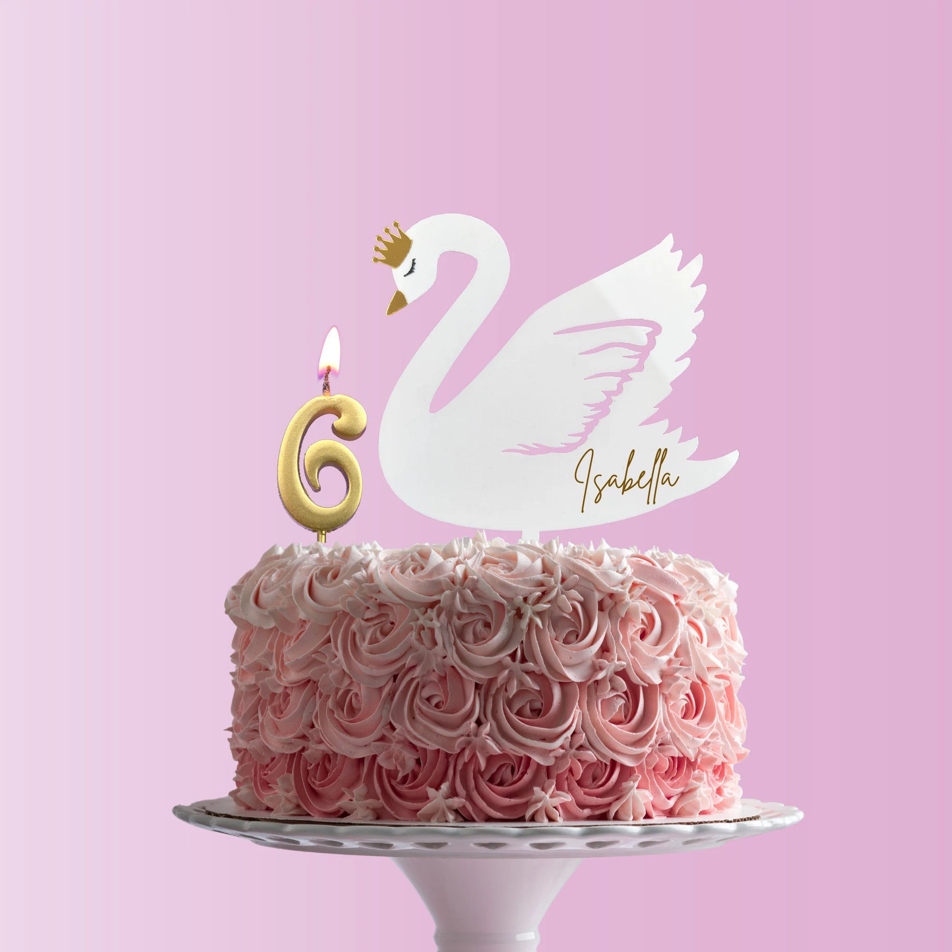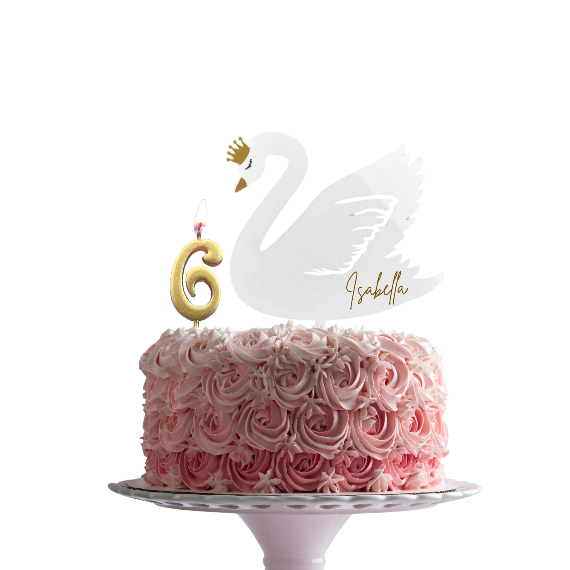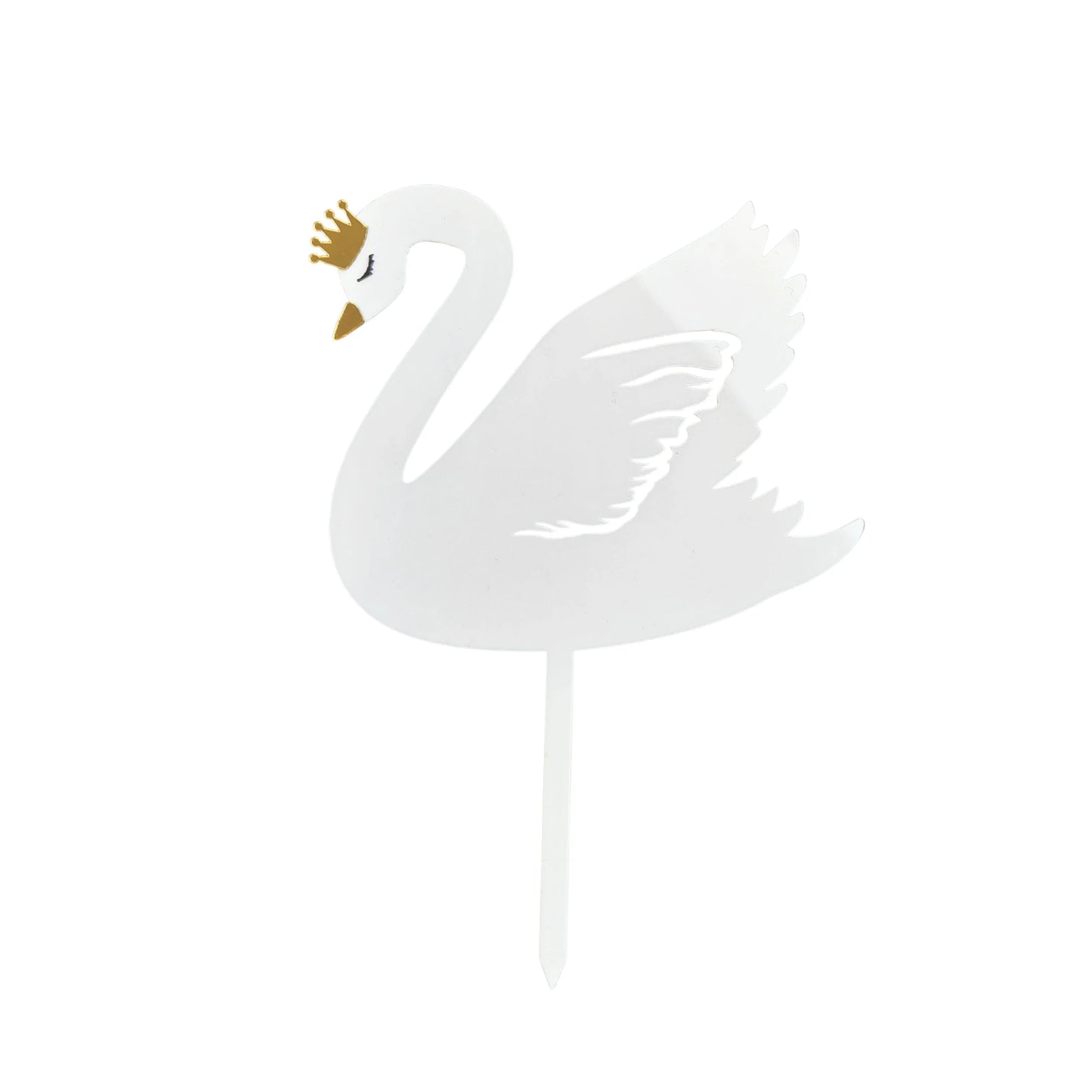 Beautiful swan cake topper with mirror effect gold crown and beak, personalise optional, made of acrylic completely safe and reusable.