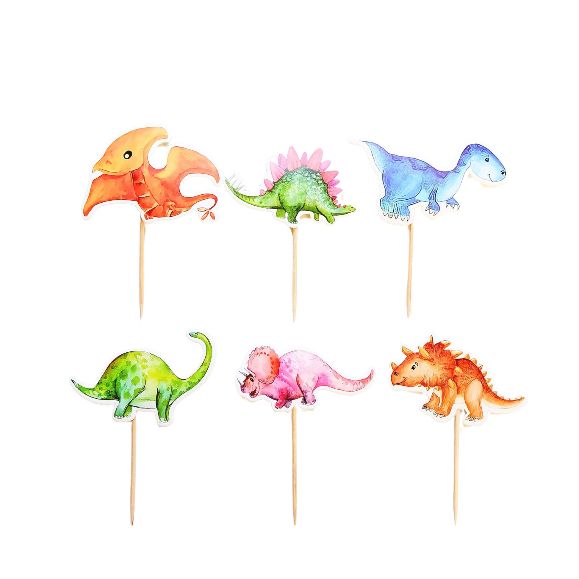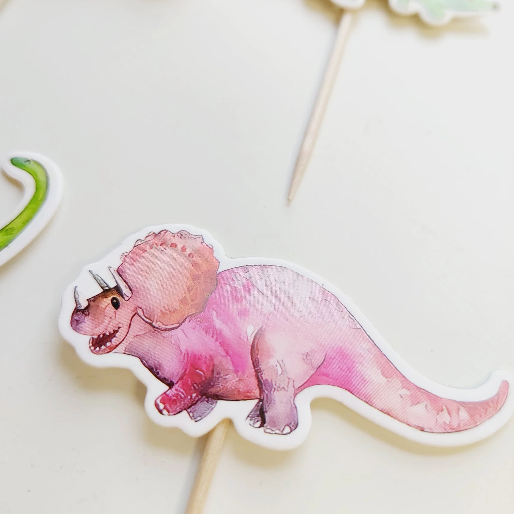 18pcs pastel Pink girls Dinosaurs Birthday cup Cake Topper set