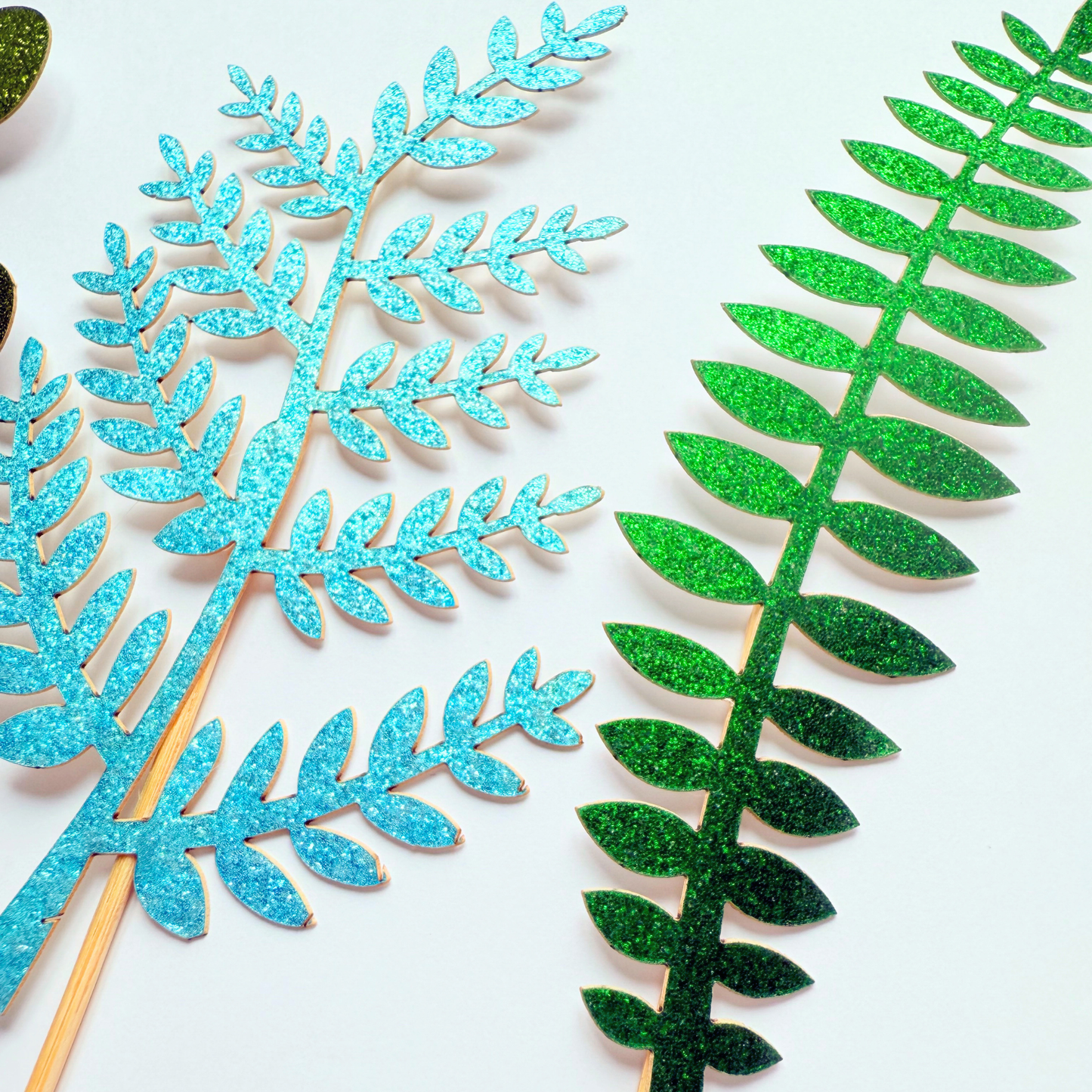 Set includes: Glittery paper leaves on bamboo sticks, size 7cm~14cm height.