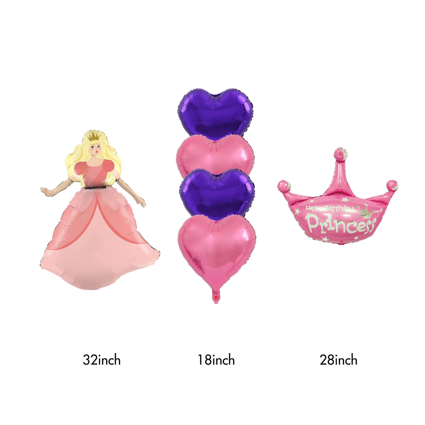 It comes in a flat pack with 1-pack princess balloon, 1-pack princess crown balloon and 4-pack love heart balloon. Beautiful combination for a birthday celebration. Straw and ribbon are included for easy set up. All helium float.