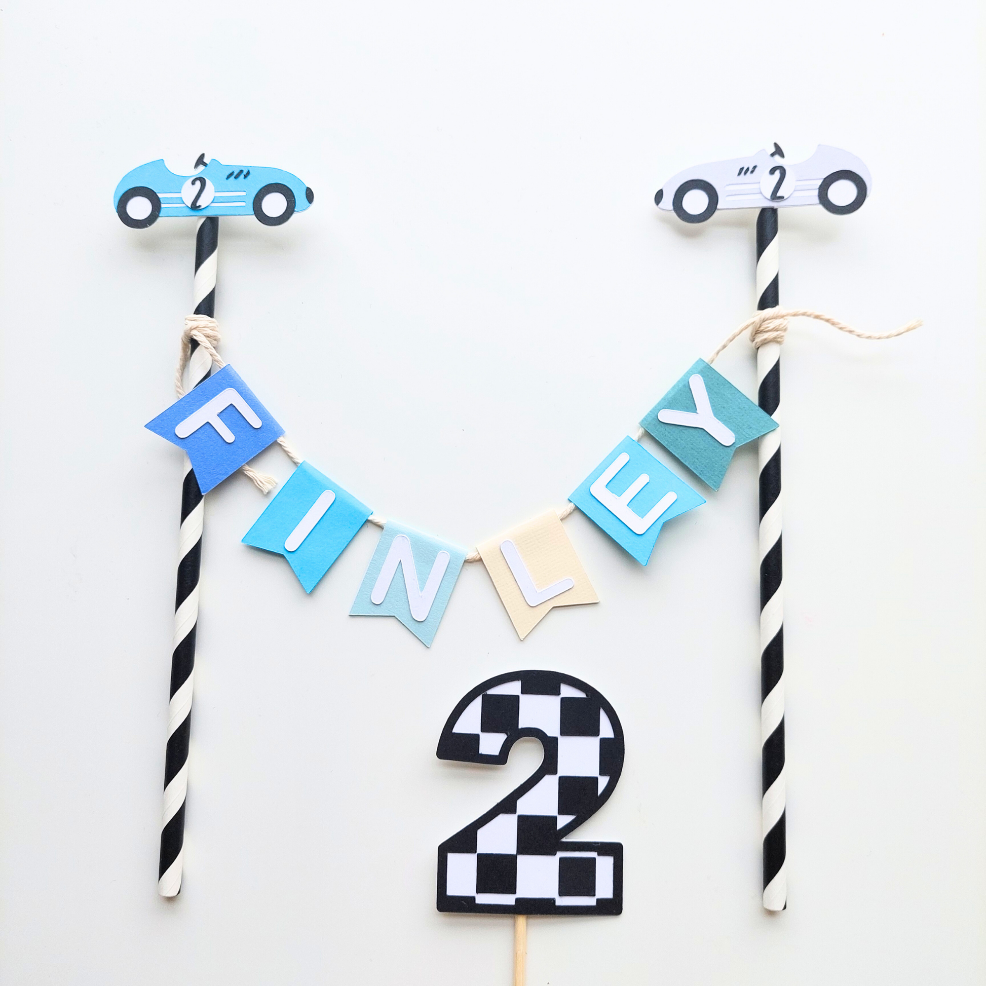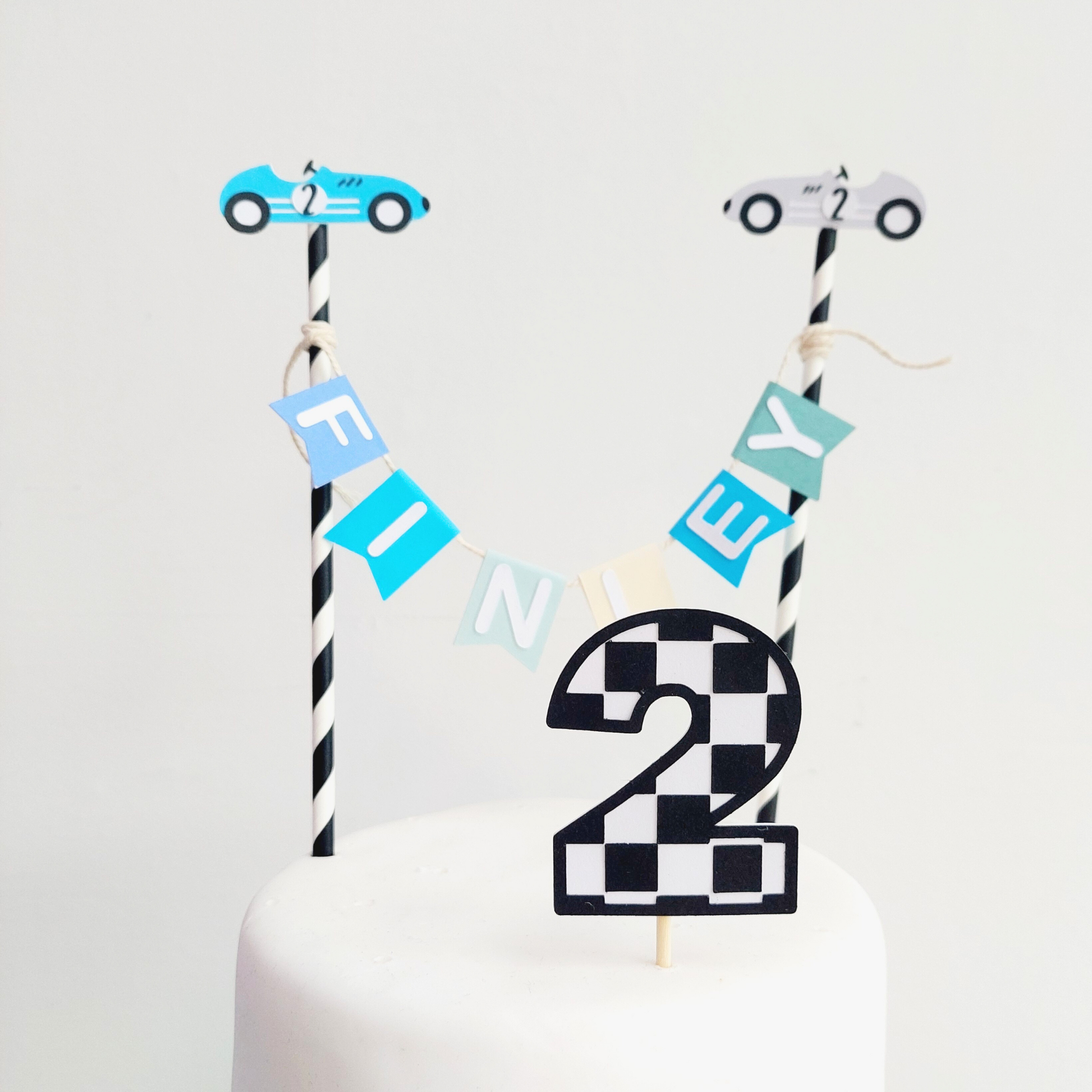 Personalised Racing Car Birthday paper cake topper for 1st 2nd birthdays
