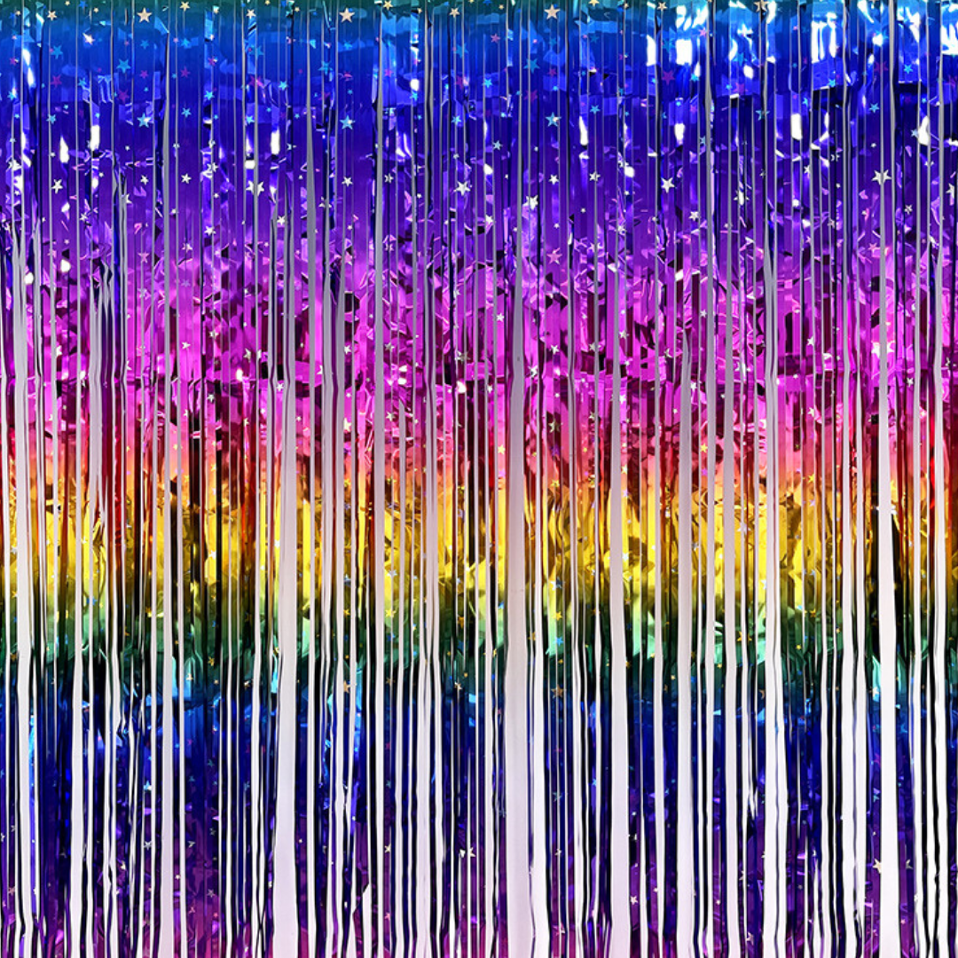 Rainbow Stars Tinsel Foil Curtain Backdrop Decoration
