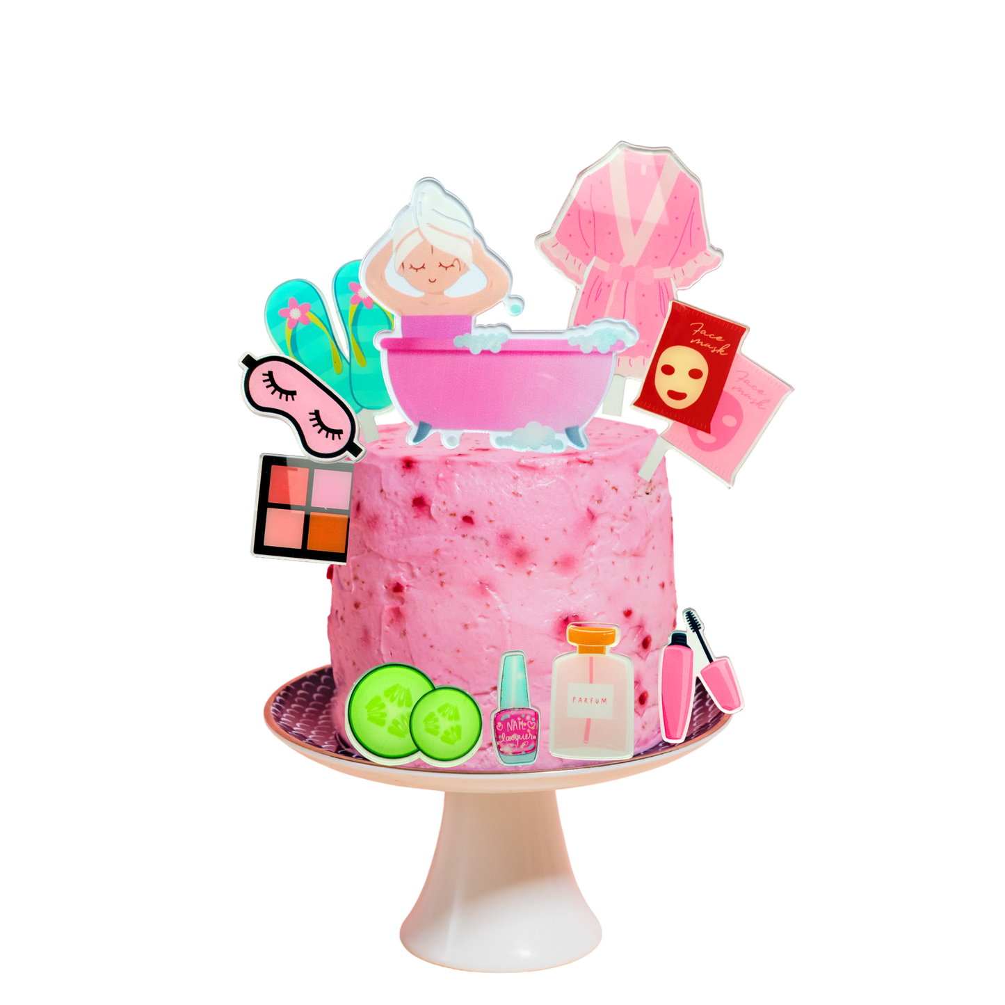 Bring some pampering fun to your celebration with this adorable spa-themed cake topper set! Perfect for girls’ birthdays, spa parties, sleepovers, or any relaxing celebration.