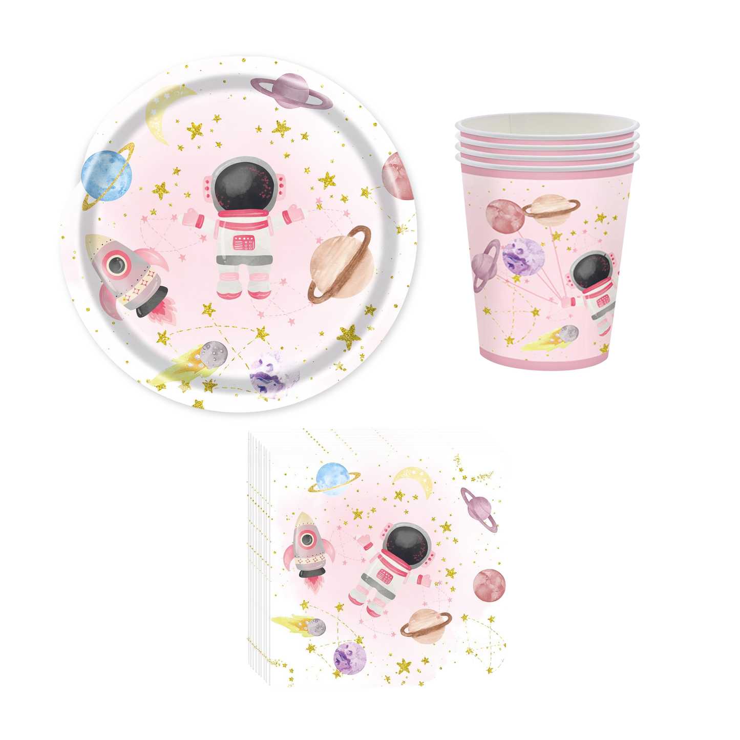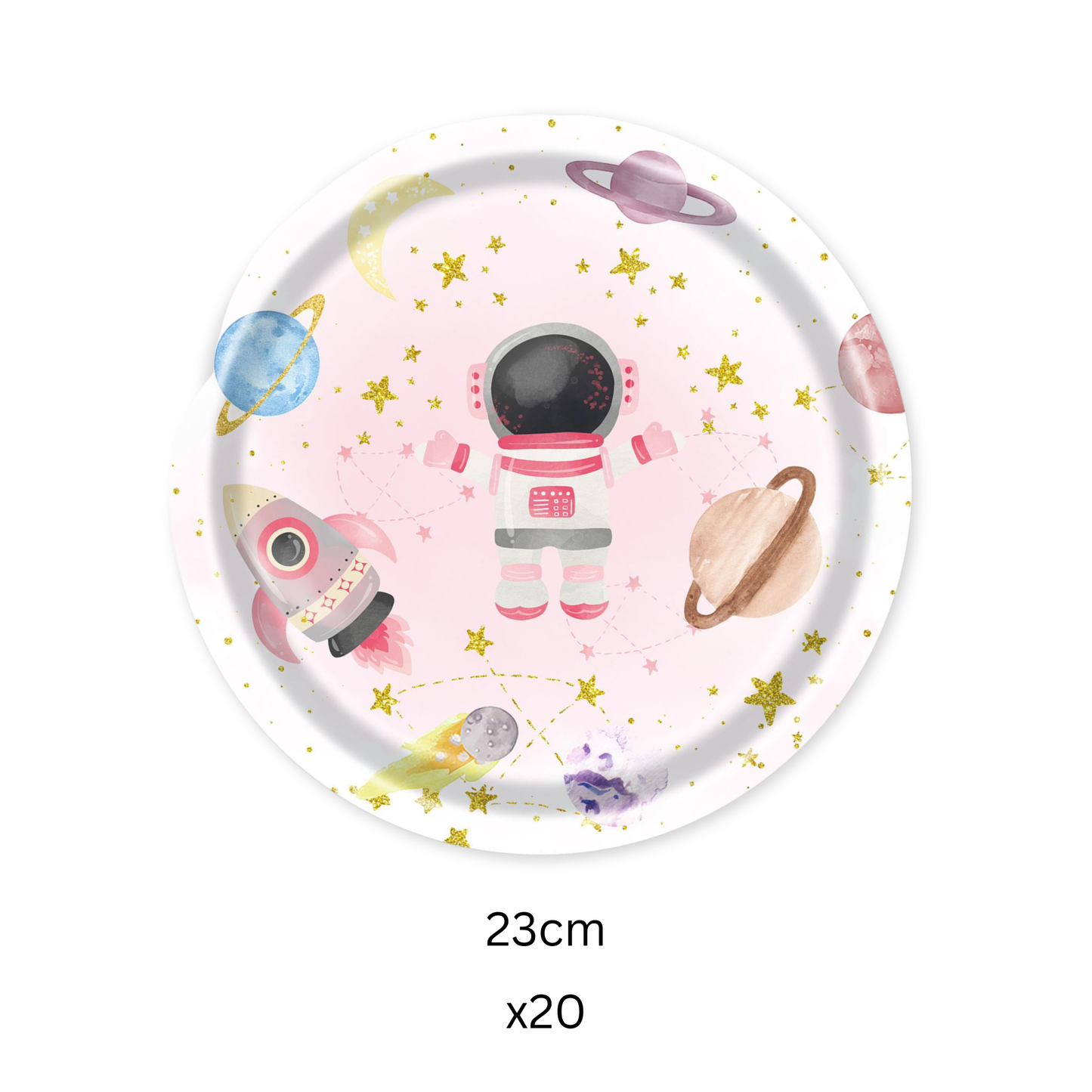 Space Astronaut pink tableware set 9" plates, 20pcs each
