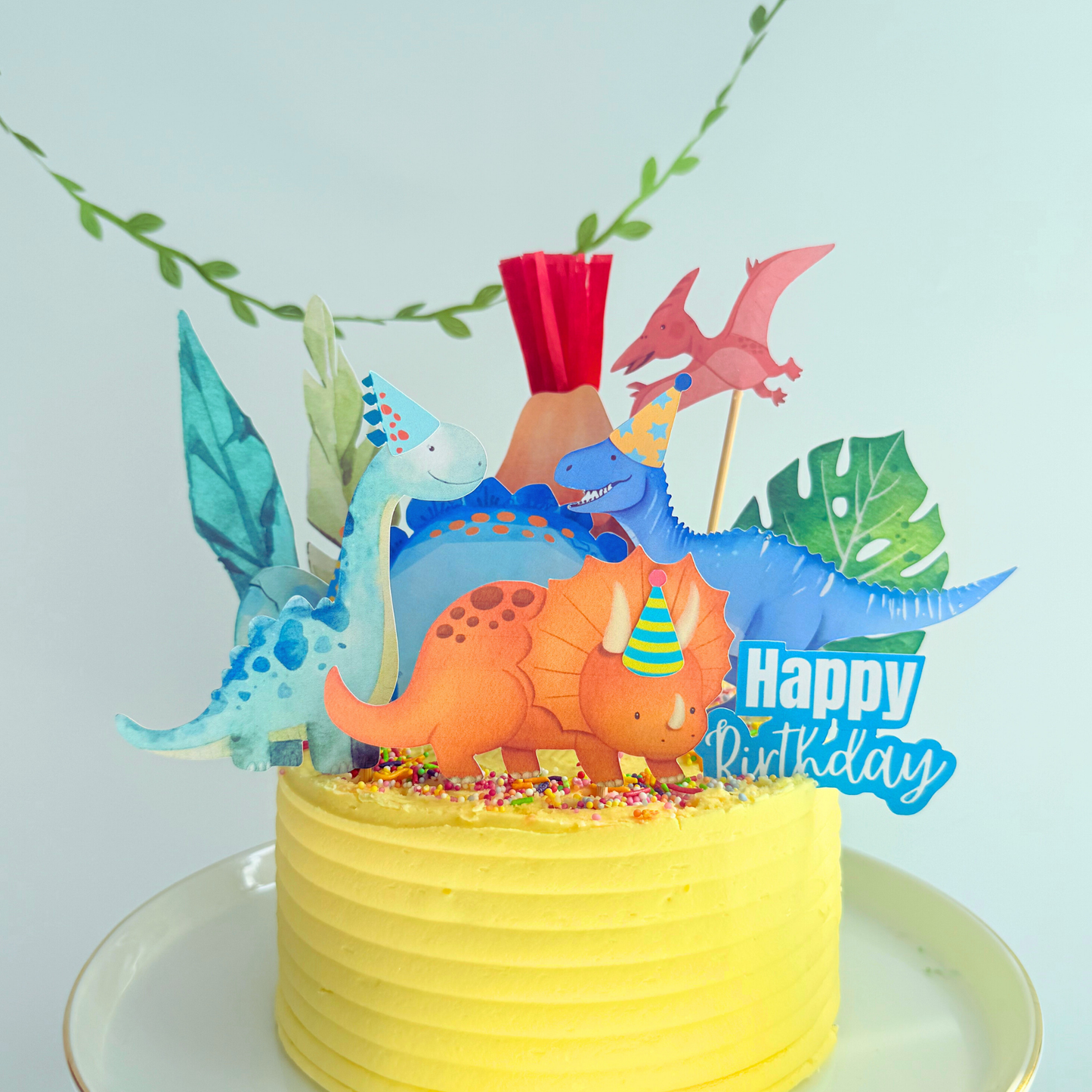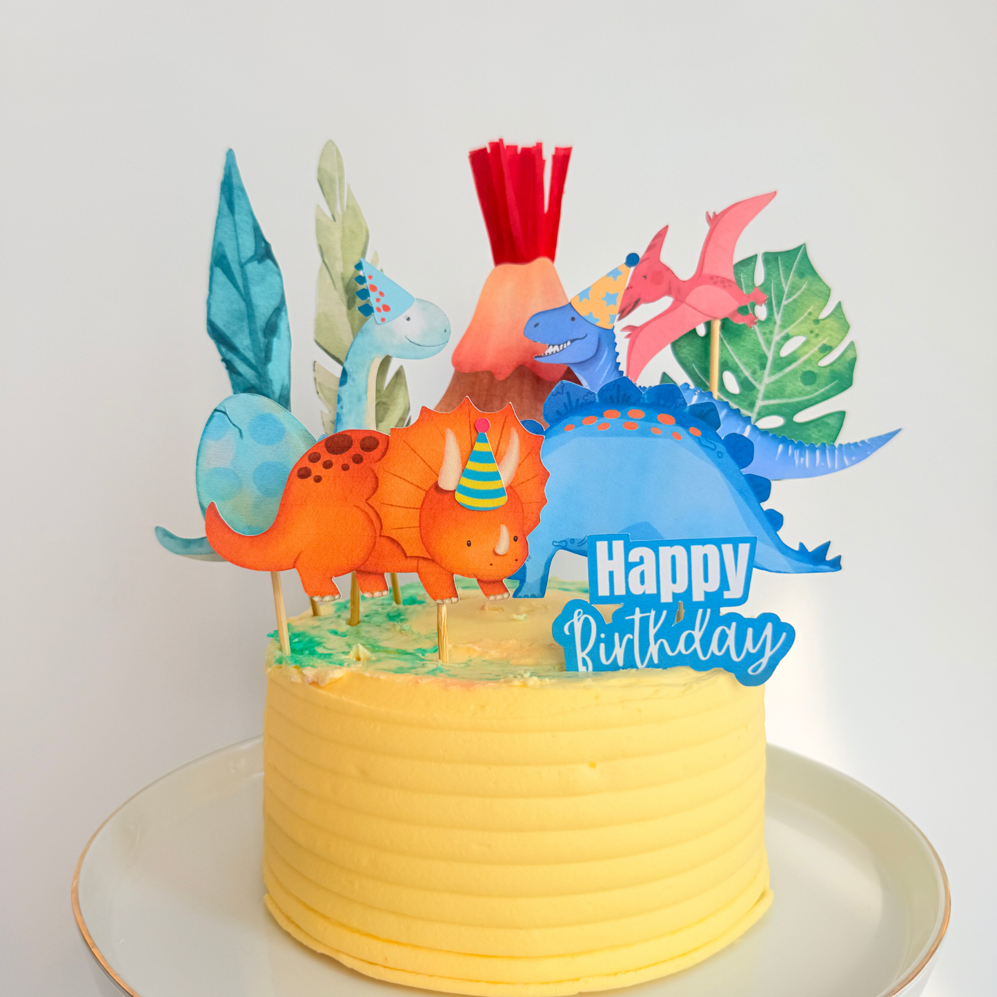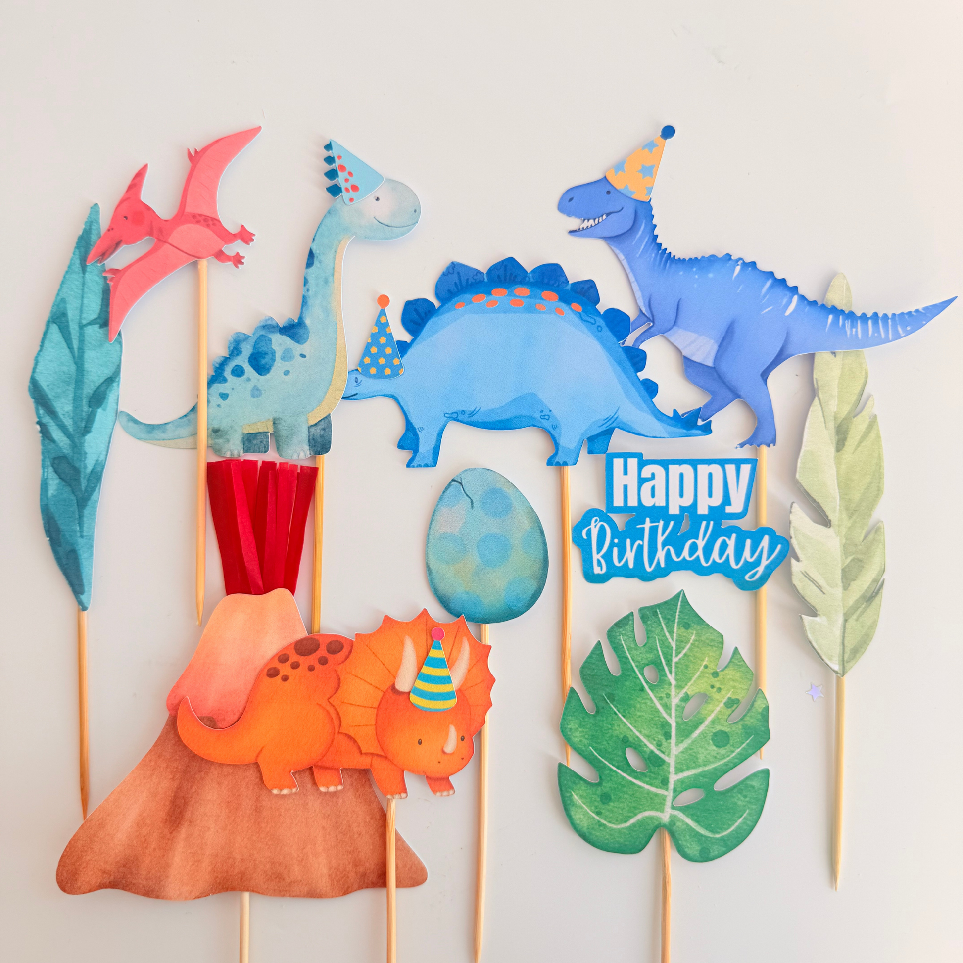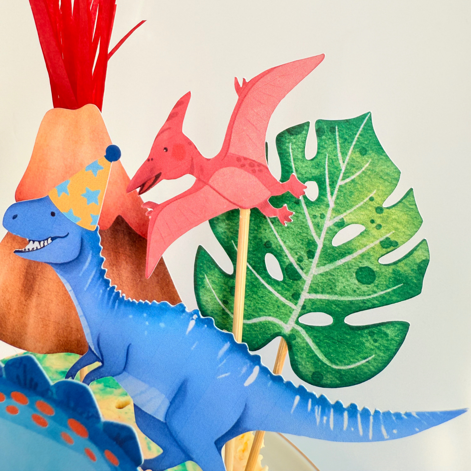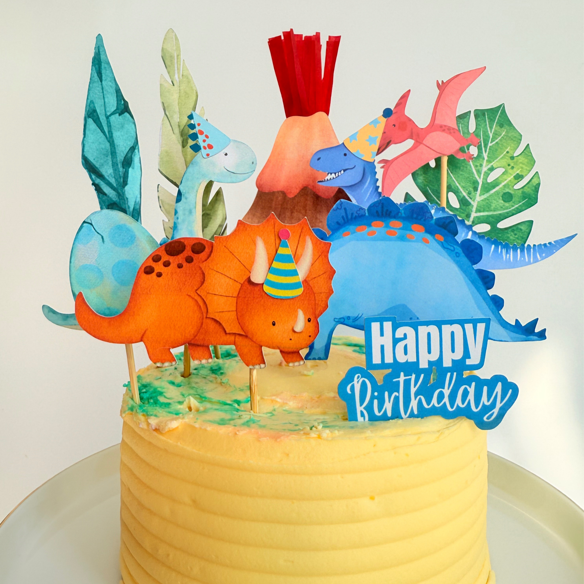 Blue green Volcano and Dinosaurs Cake Toppers Birthday Party Decor Handmade cake Picks