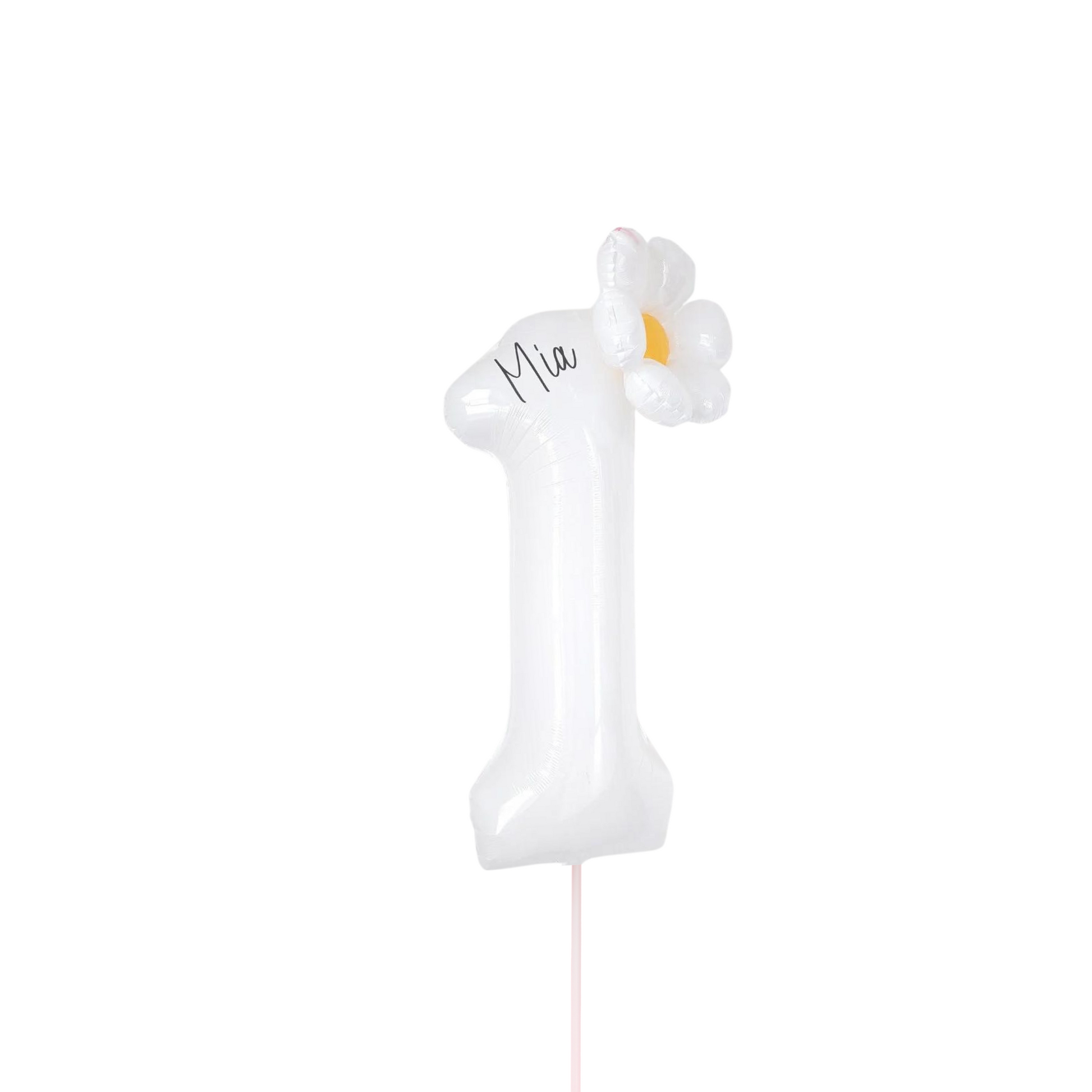 Cute 16inch daisy balloon with 40inch white number balloon, customise your own name stickers are optional.