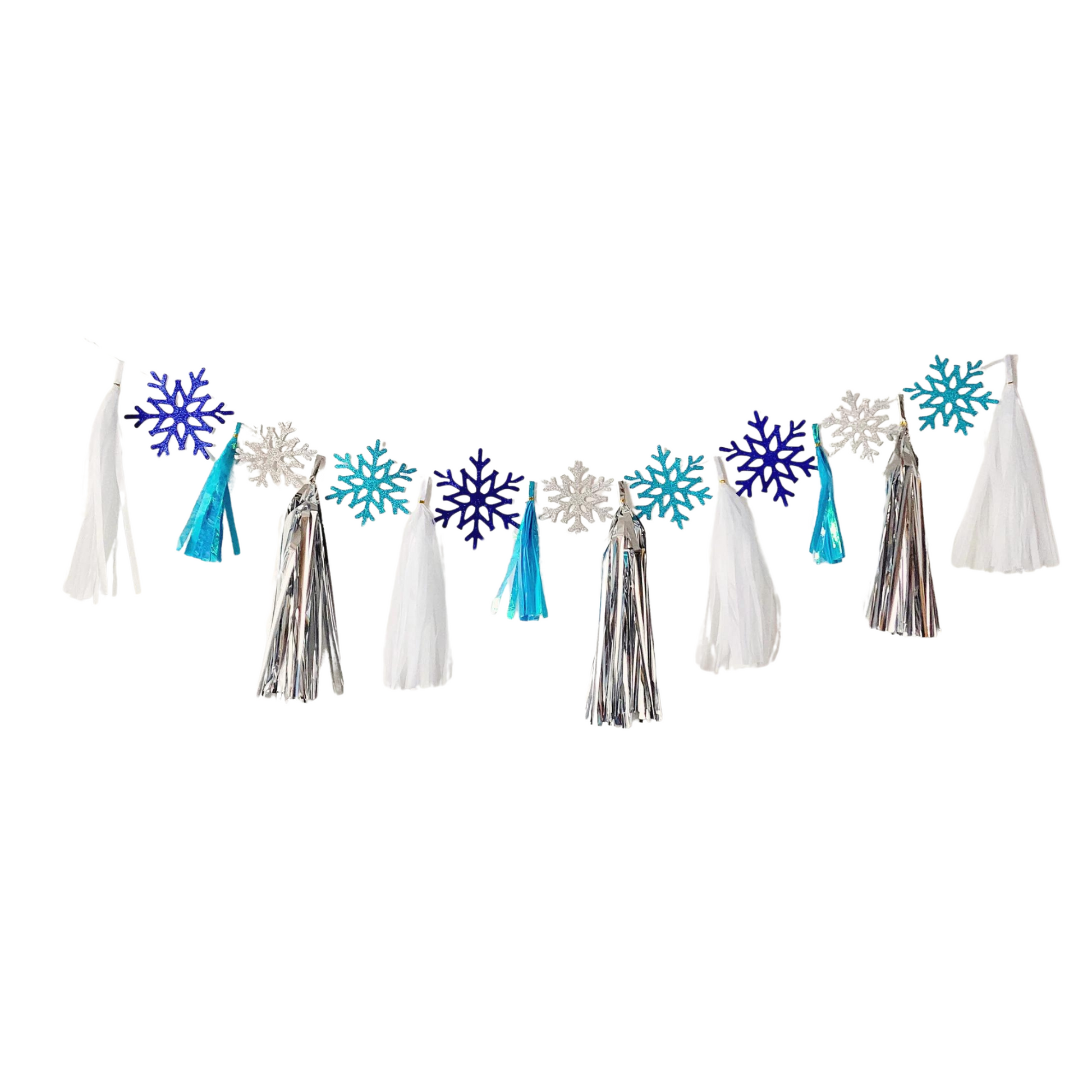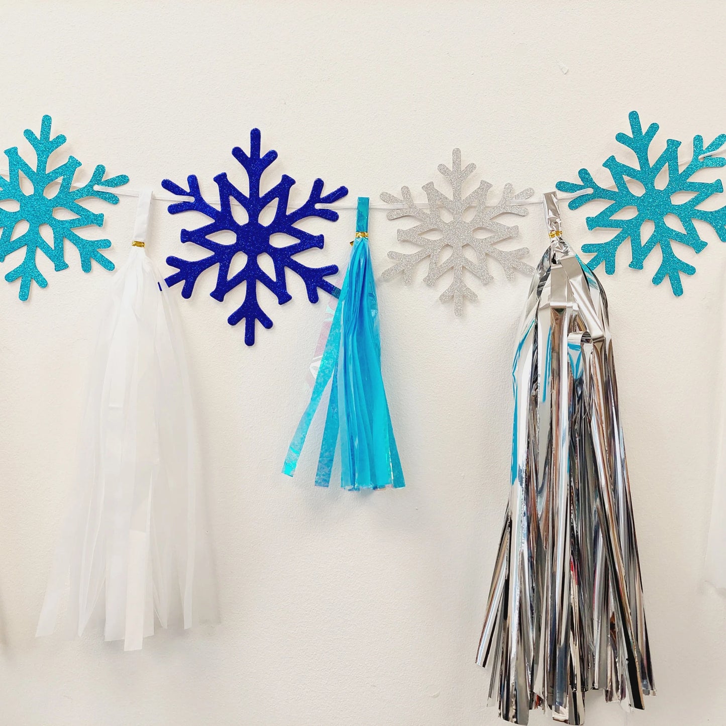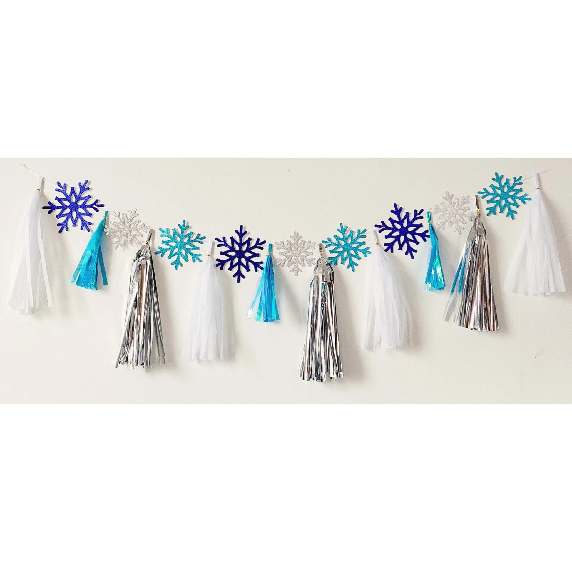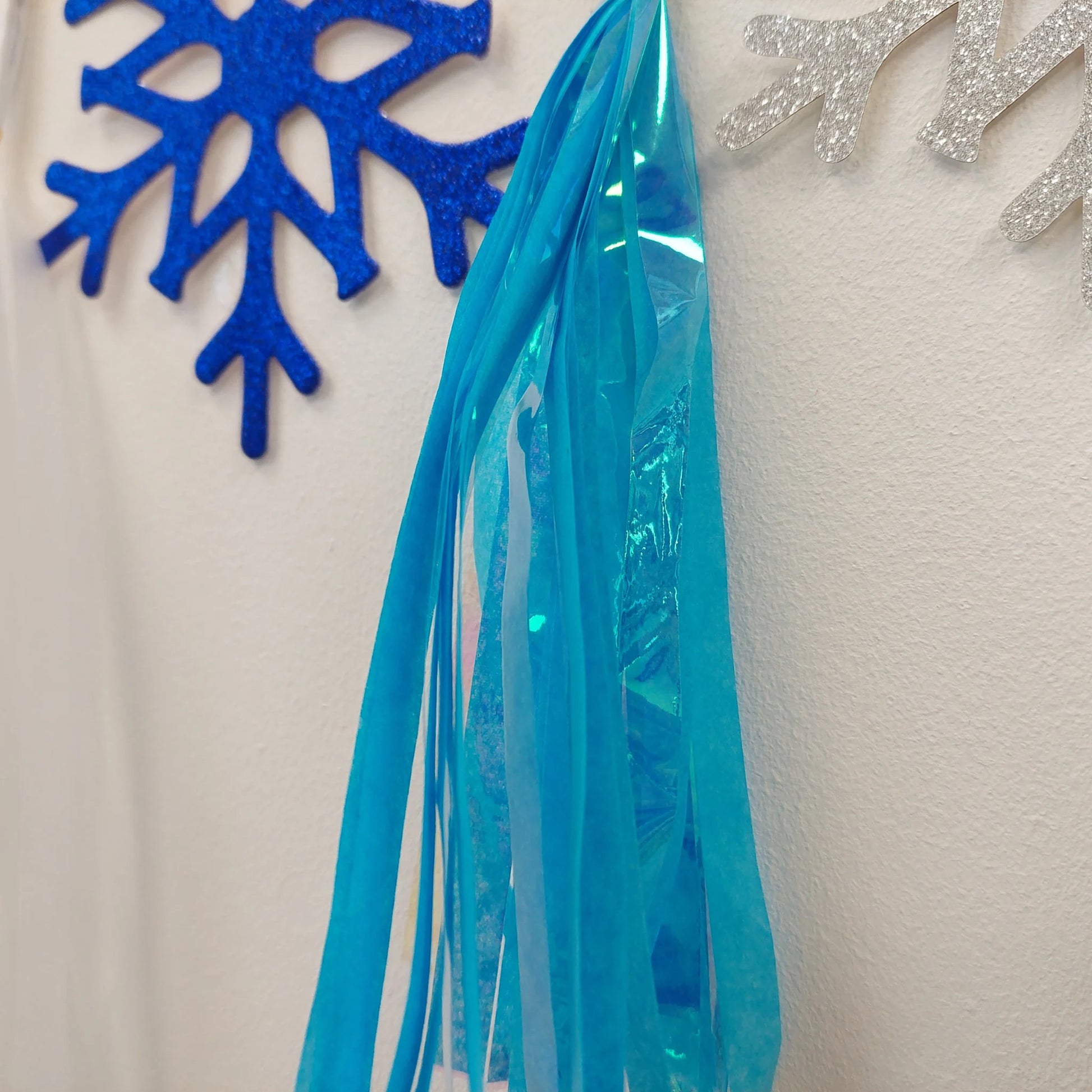 Winter Christmas Frozen princesses blue white snowflakes tissue tassel garland