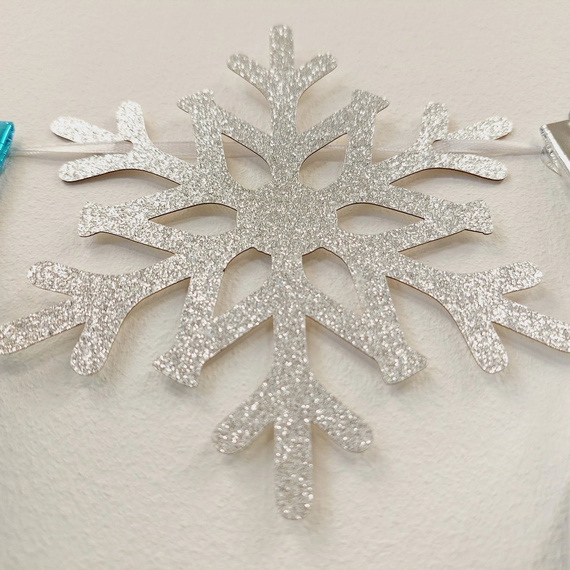 9-pack laser cut snow flakes on glittery cards in dark blue, light blue and silver(12-15cm). 3-colour tissue tassel in iridescent blue(20cm length), white(35cm length), silver(35cm length), in total make 15 tassels, can make a 1.2m to 1.5m garland depends on how you separate them. Great for party or home decoration.